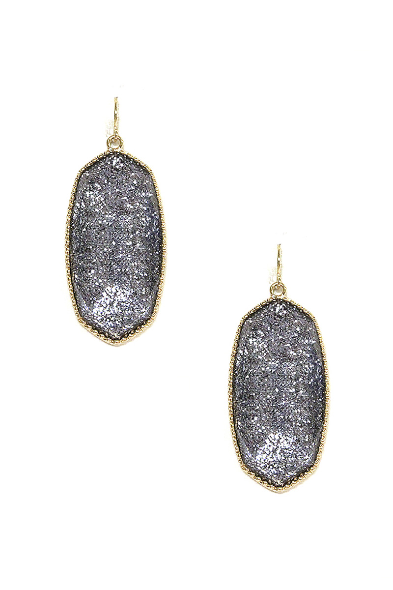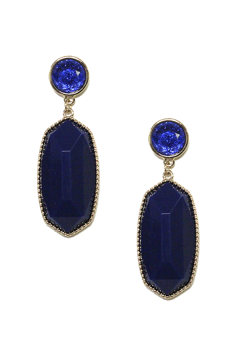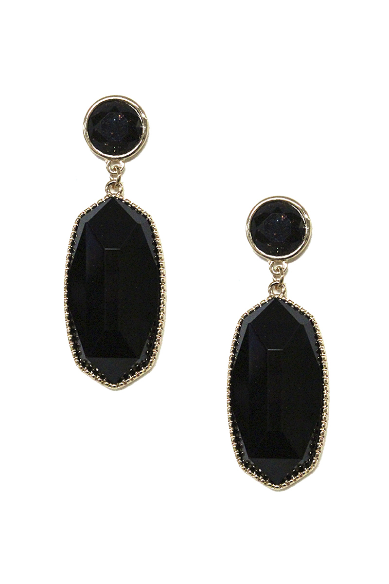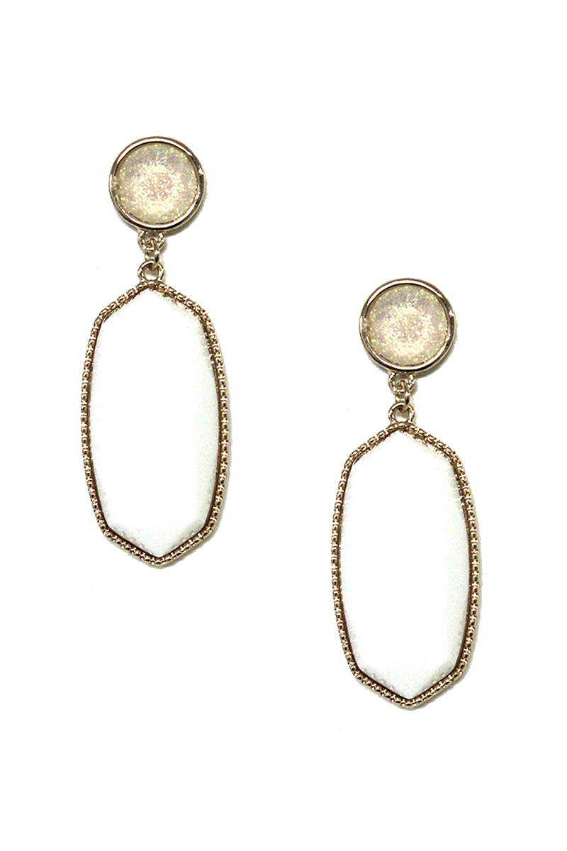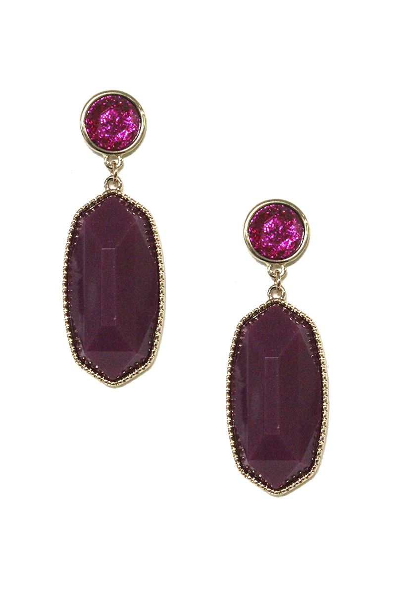 RESIN STONE SQUARE TEARDROP DANGLE EARRING