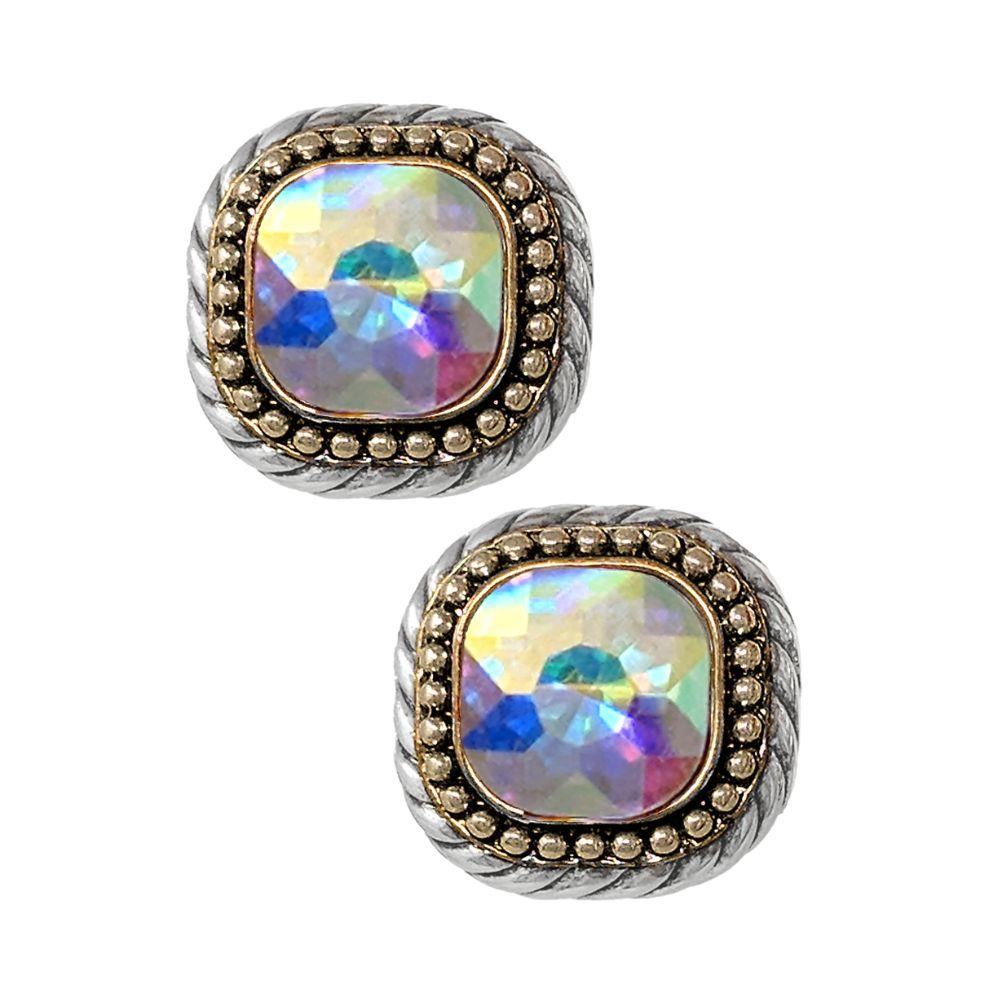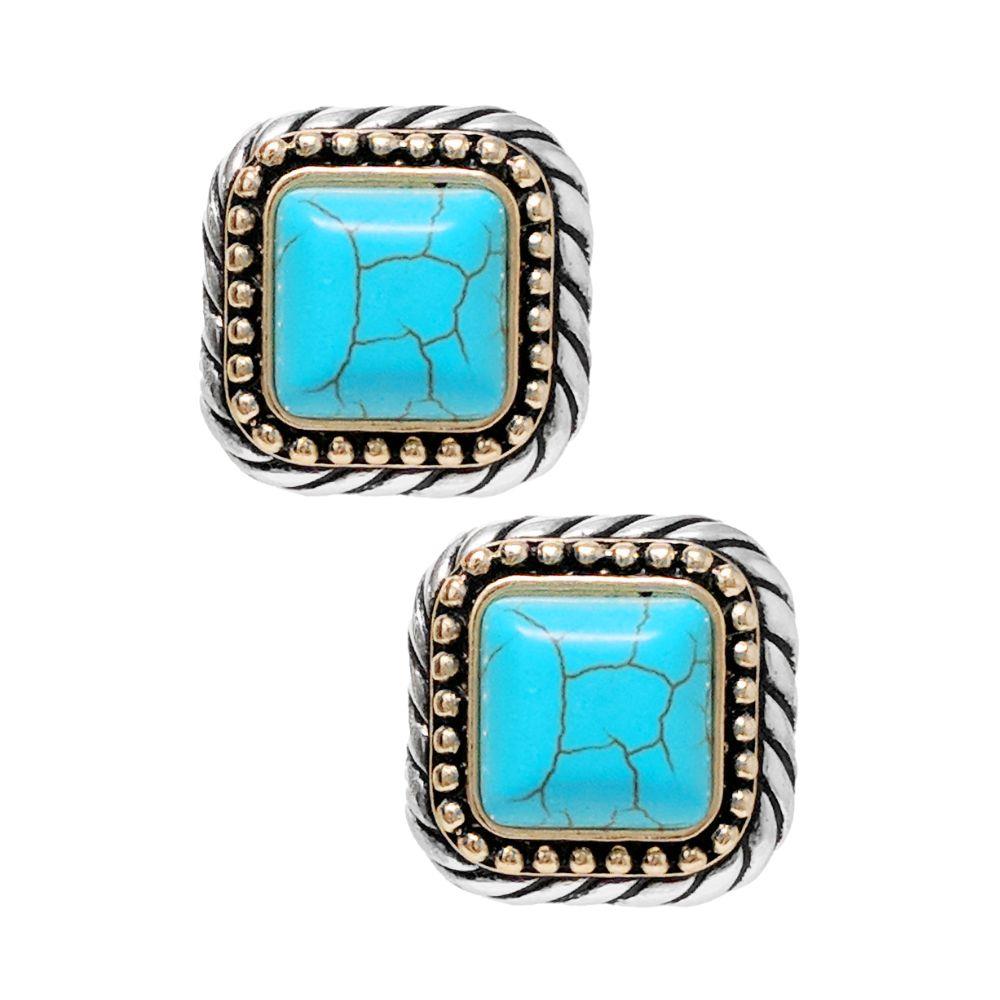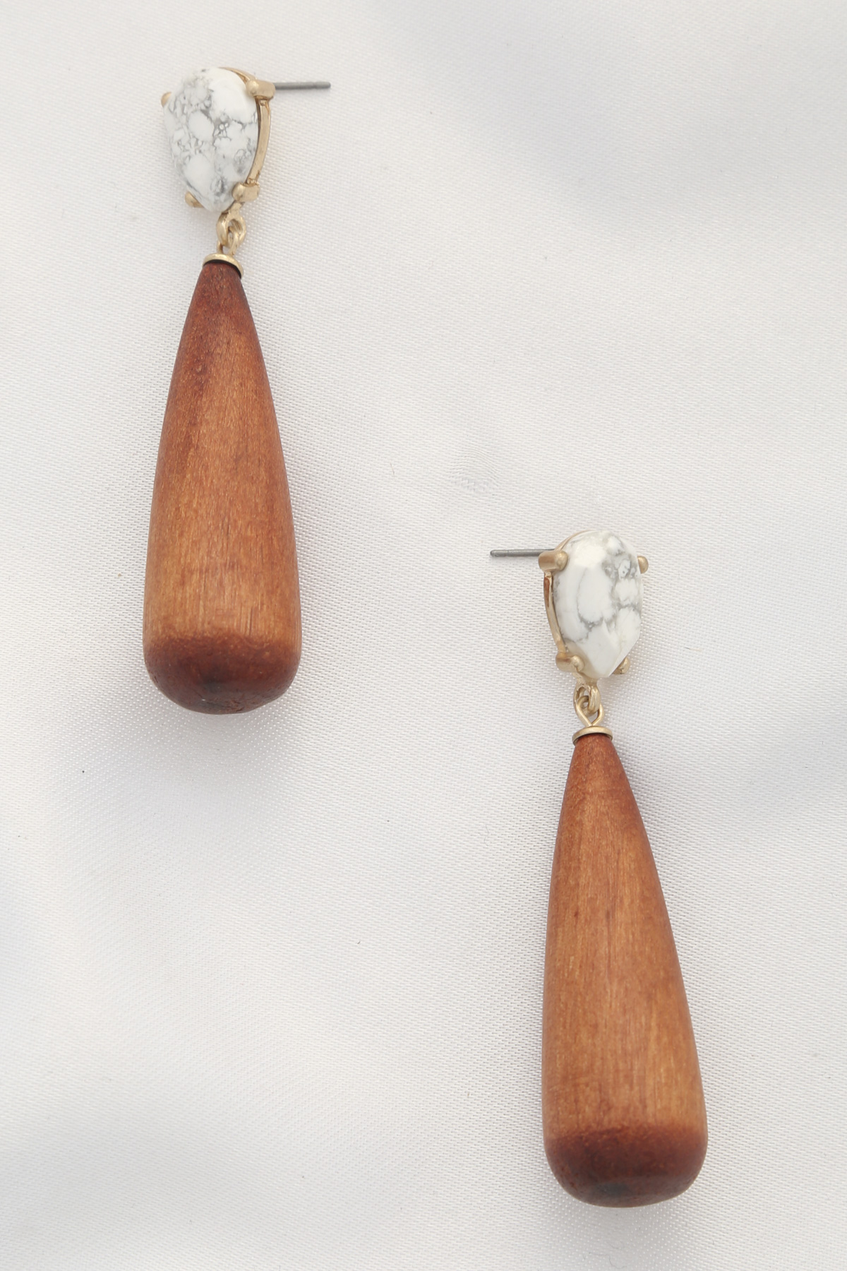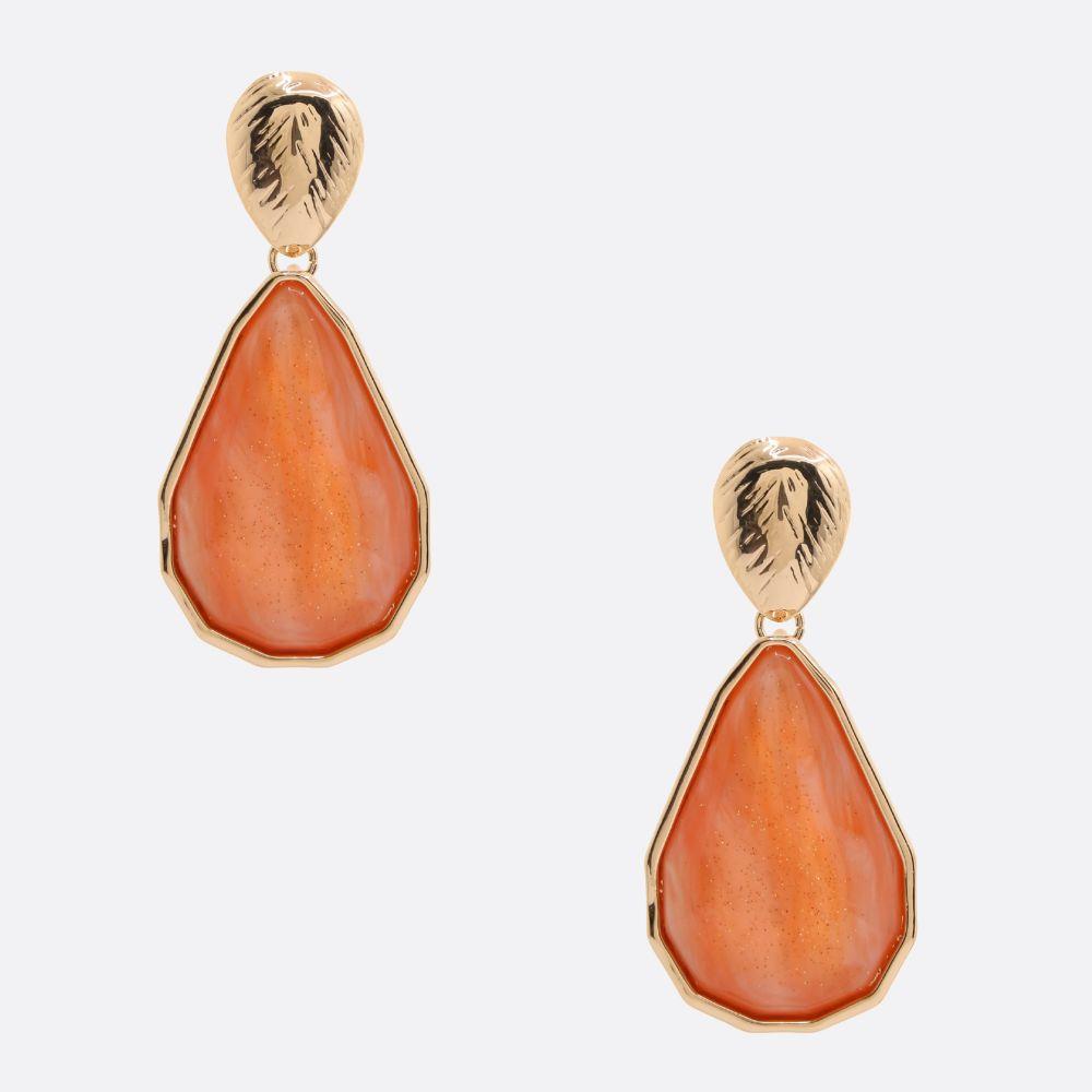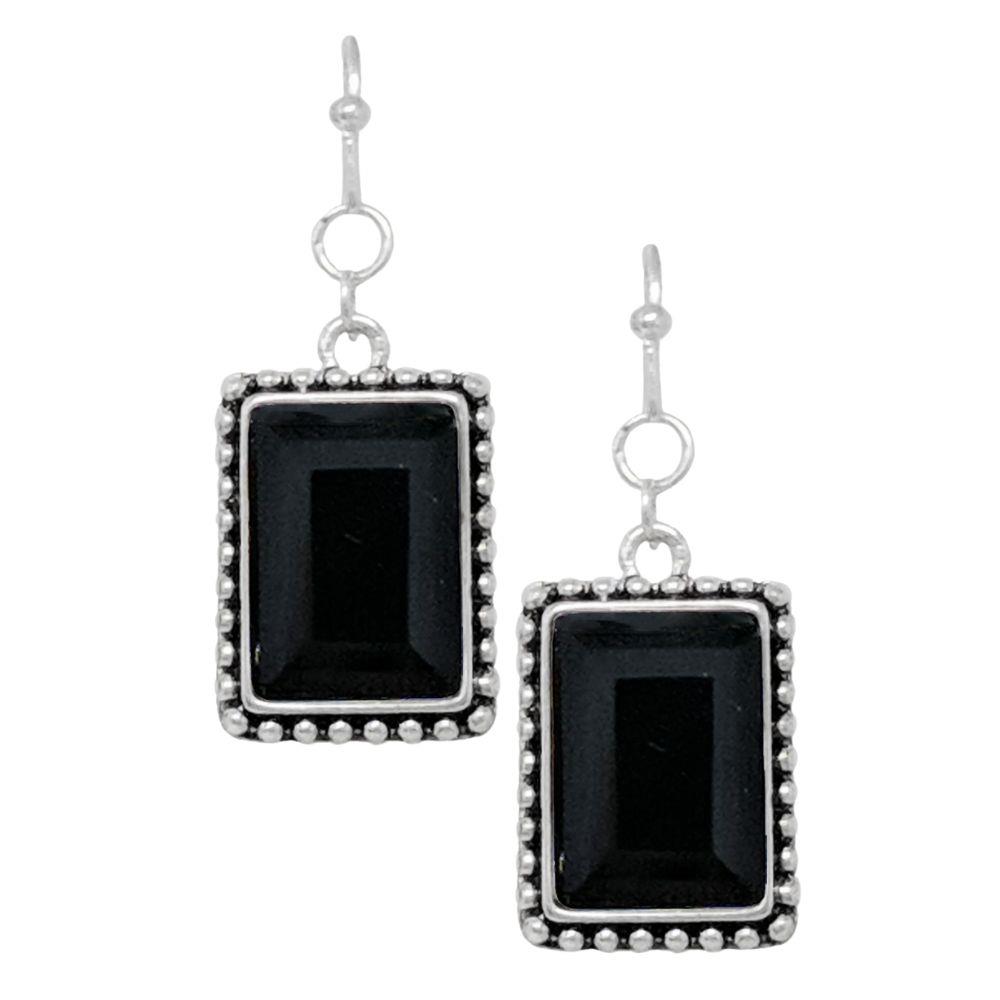 RESIN STONE SQUARE TEARDROP DANGLE EARRING
