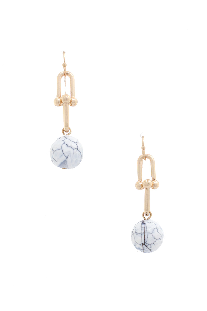 TEXTURED METAL MARBLE RESIN DANGLE EARRING