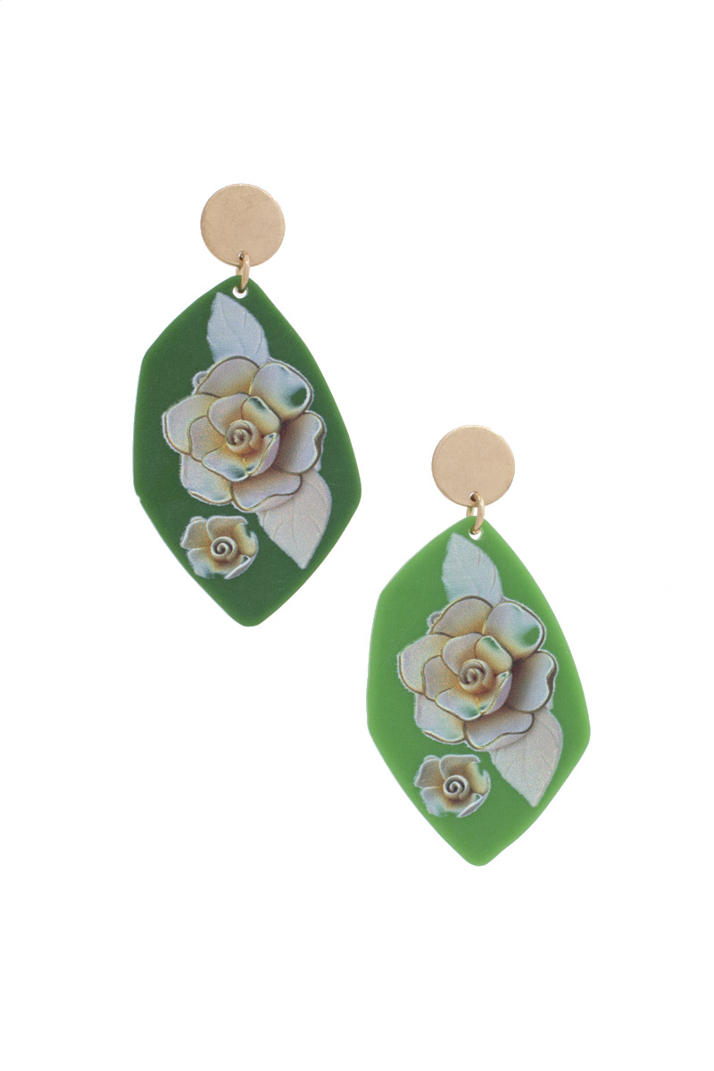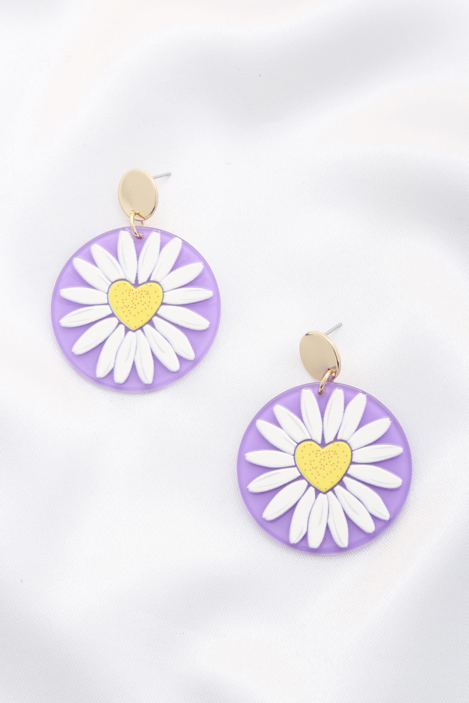 OWL FLOWER PATTER DISC DANGLE EARRING