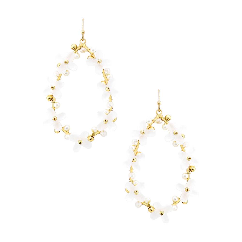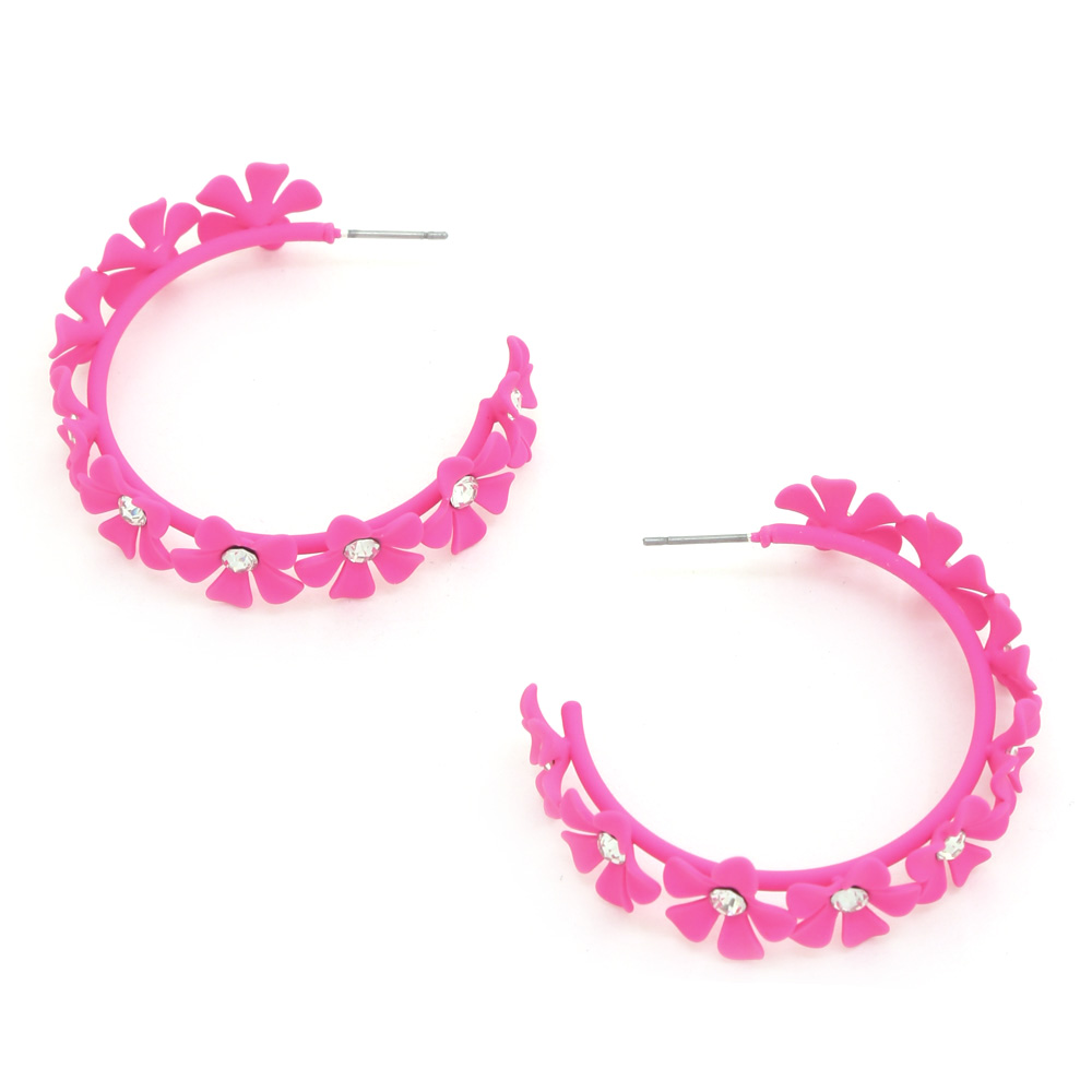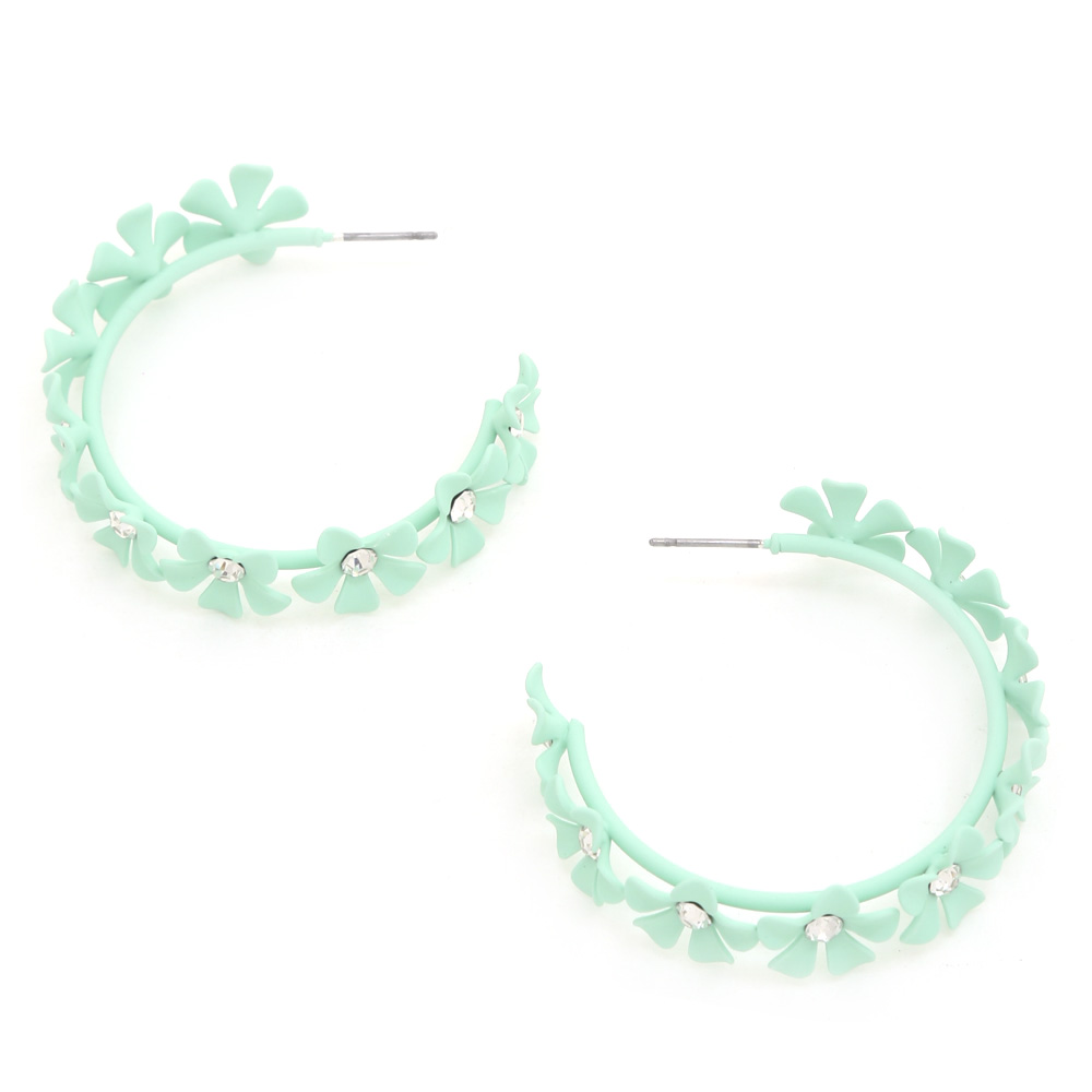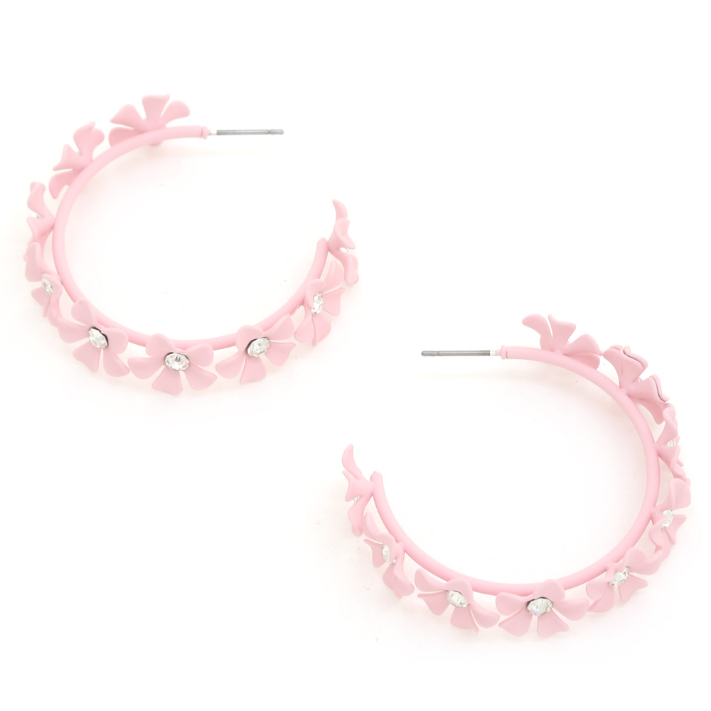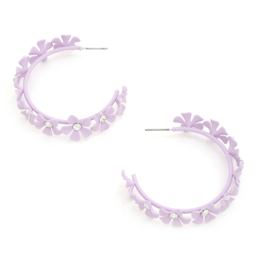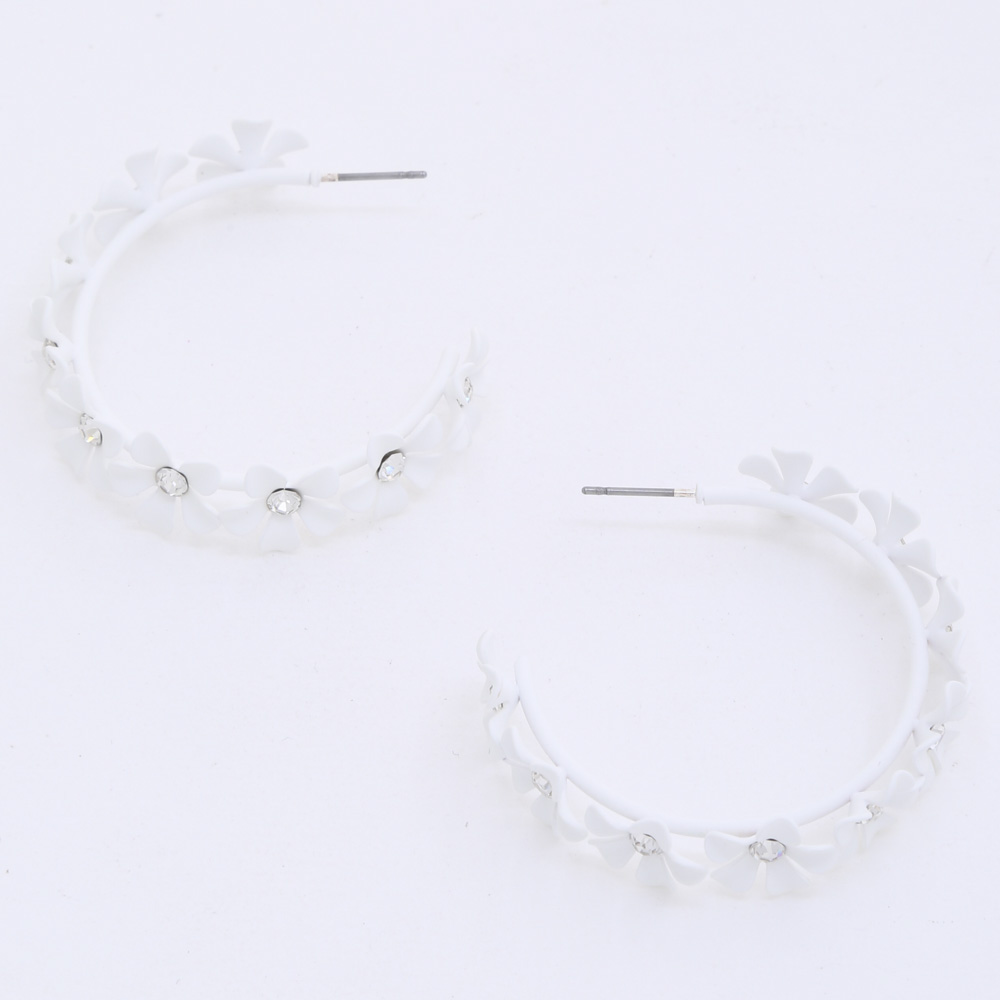 FLOWER CRYSTAL OPEN HOOP EARRING