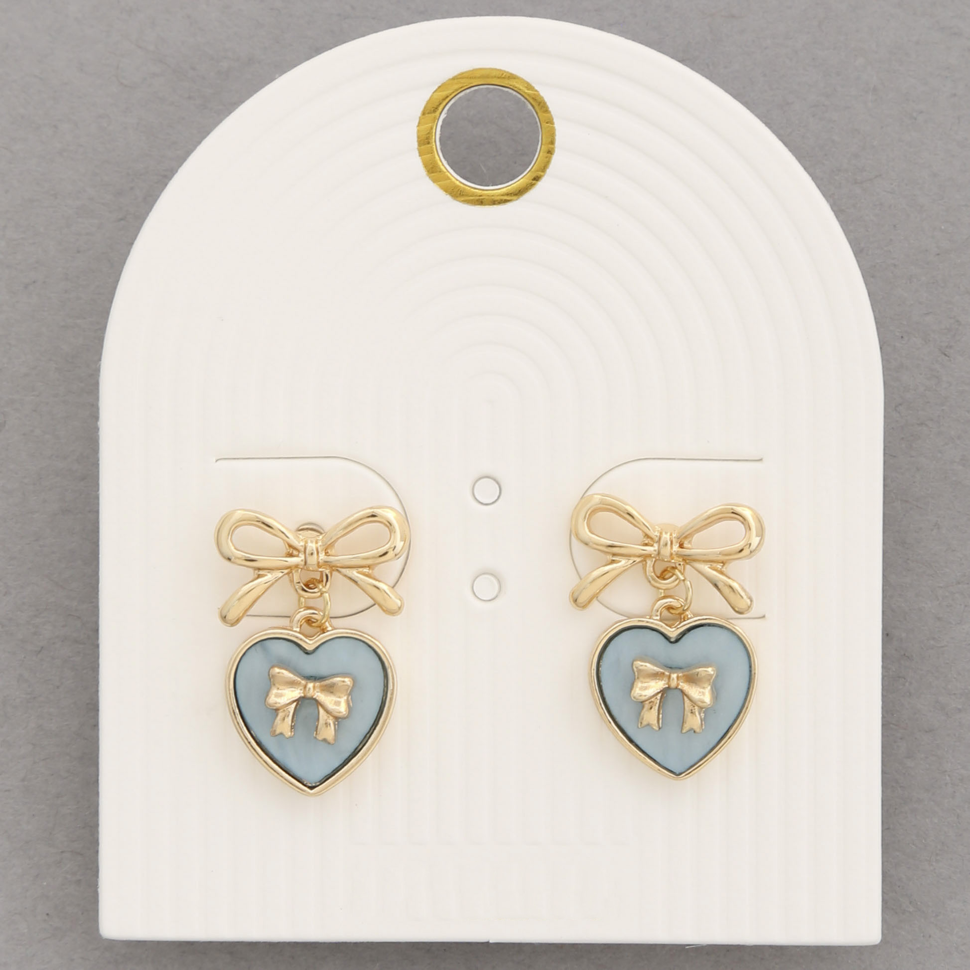 WESTERN SEMI STONE ACE RIBBON BOW DANGLE EARRING