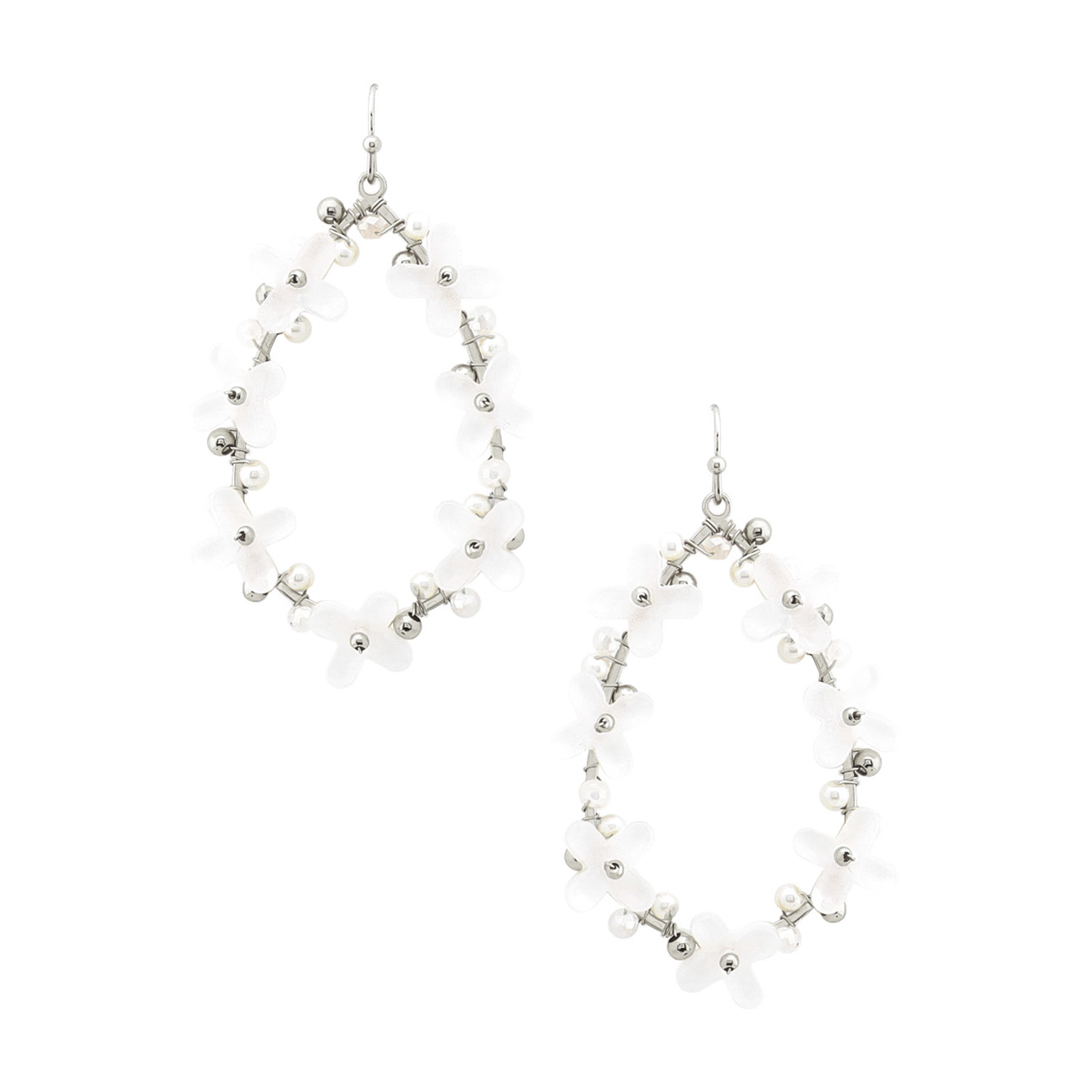 PEARL BEAD OPEN OVAL DANGLE EARRING