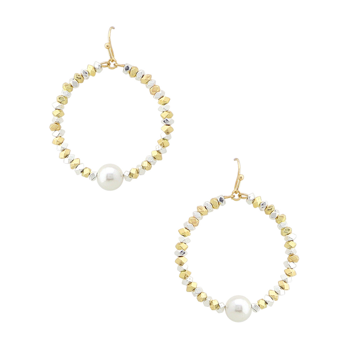 PEARL BEAD METAL BEAD DANGLE EARRING