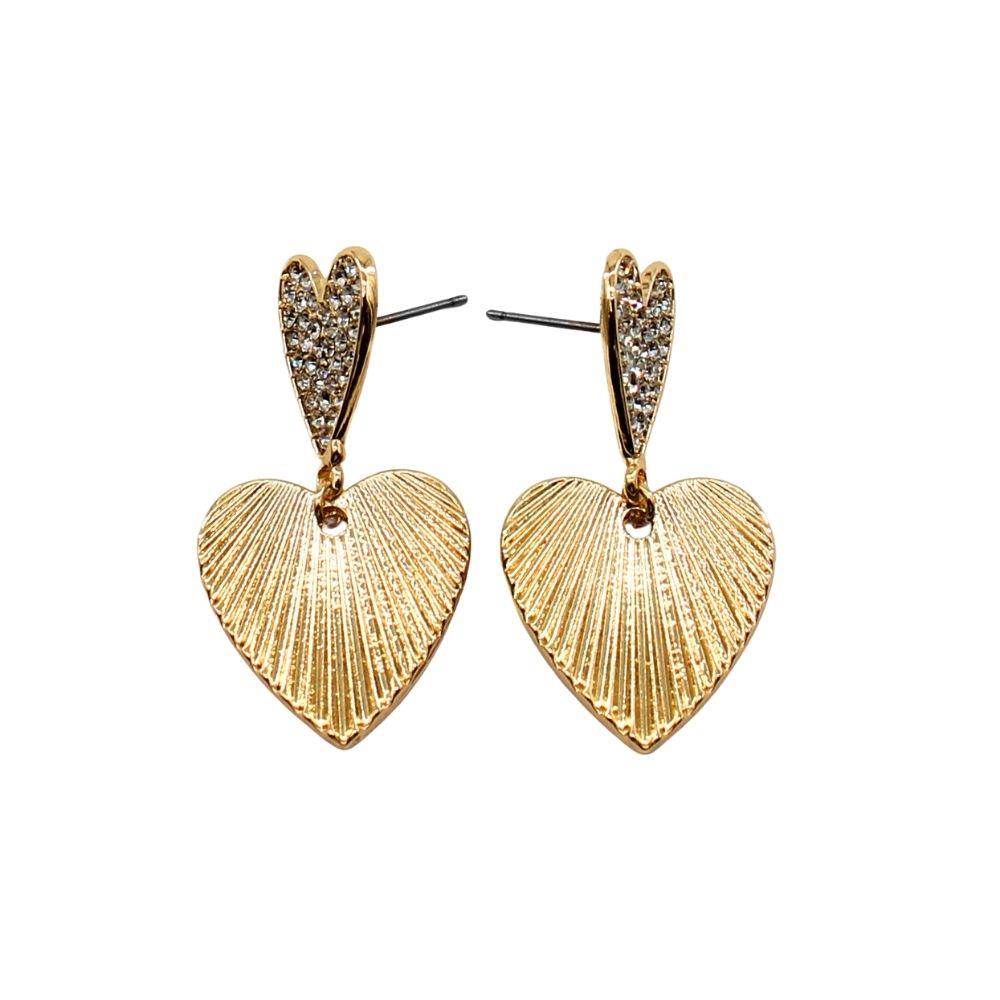 TEXTURED METAL HEART DANGLE POST EARRINGS