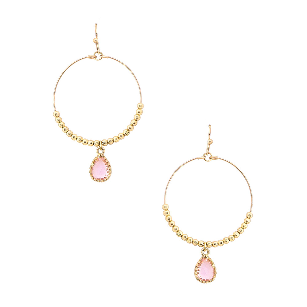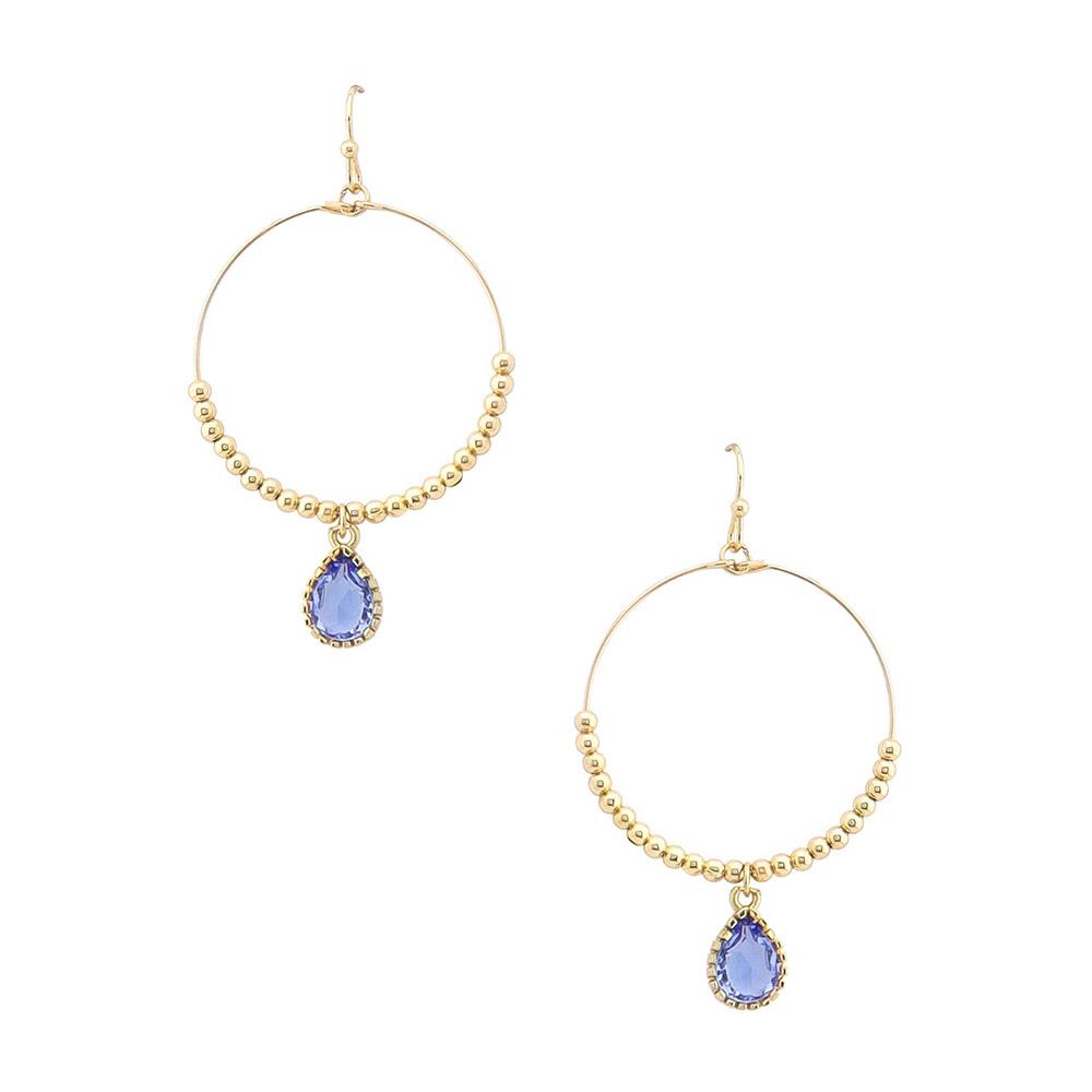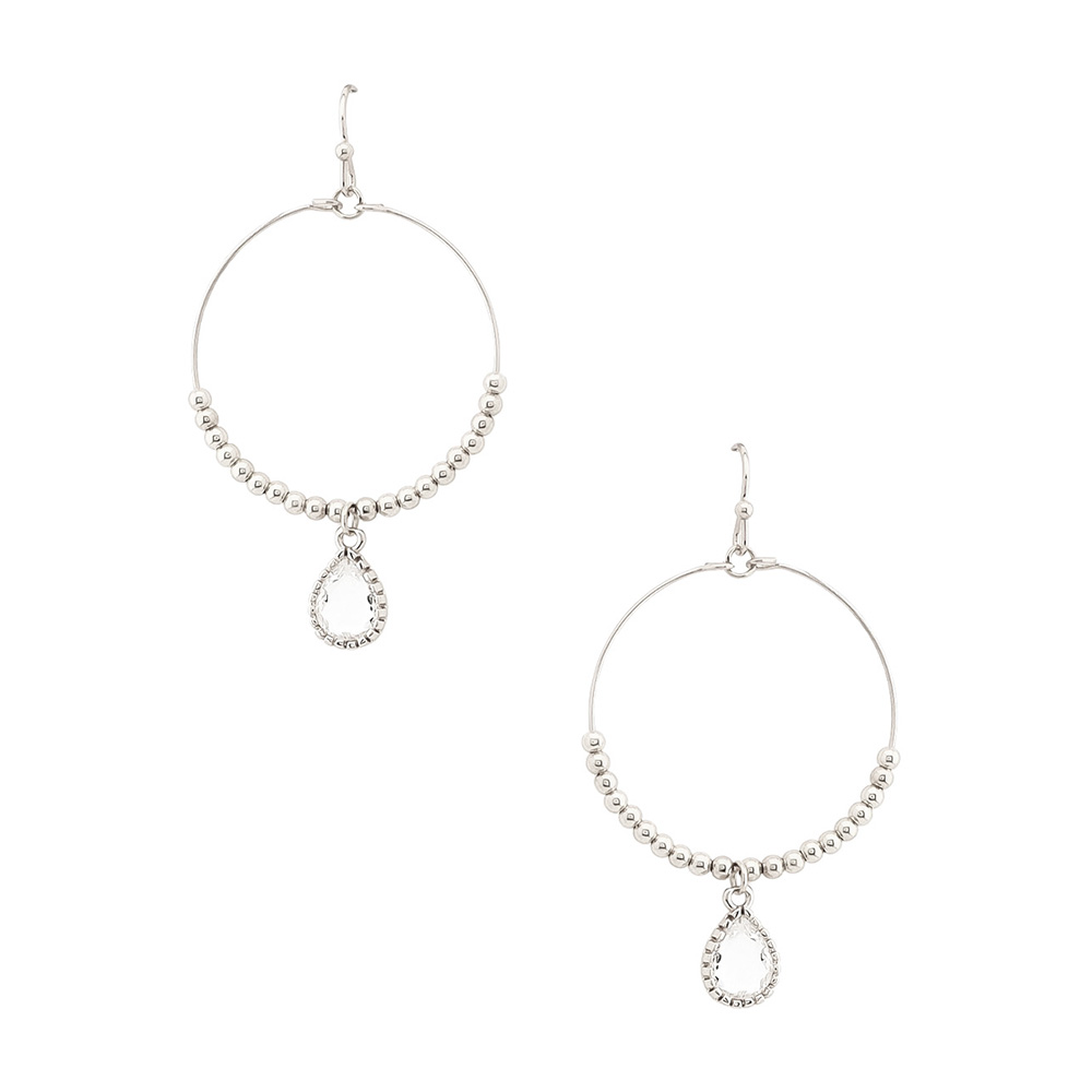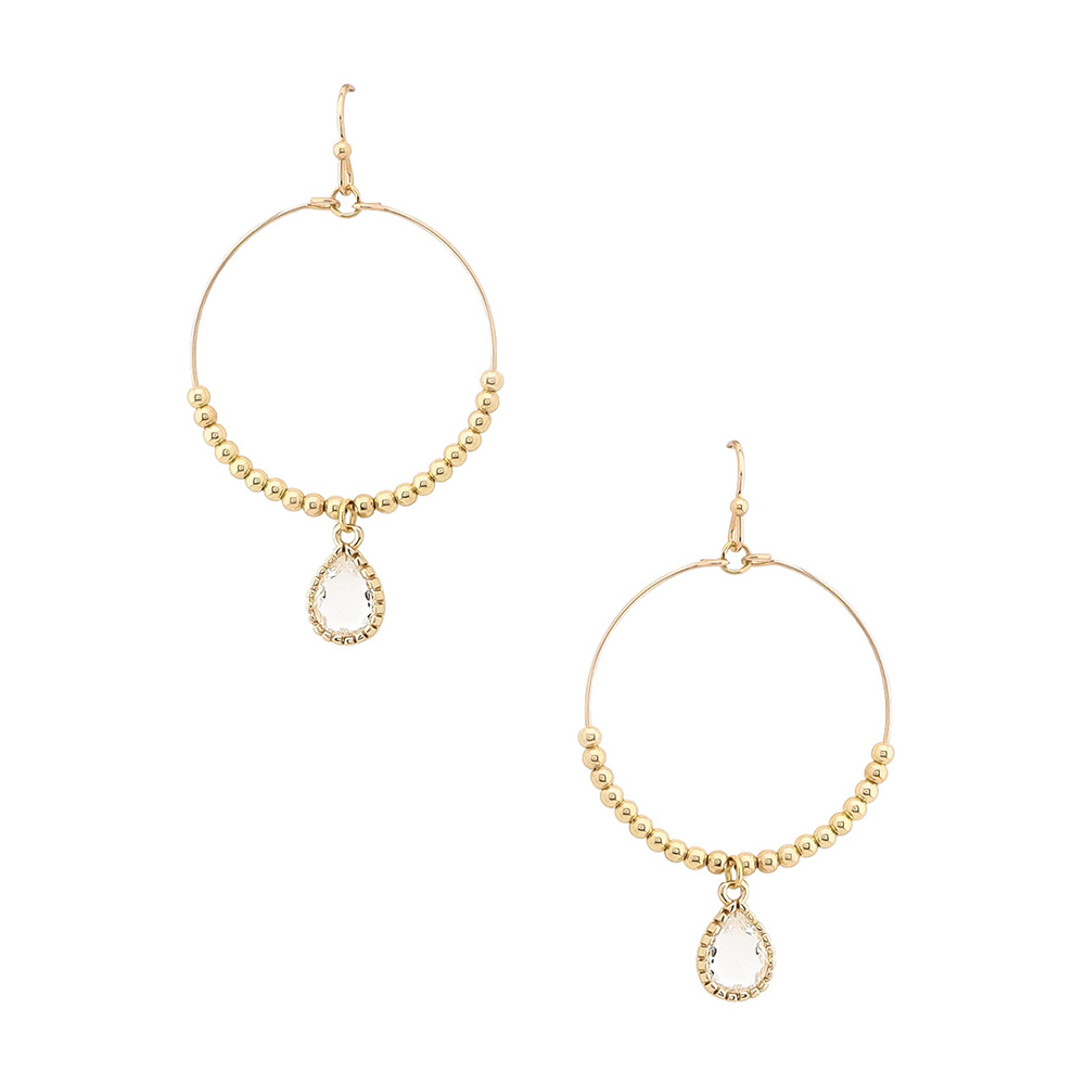 CRYSTAL TEARDROP BEADED HOOP DANGLE EARRING