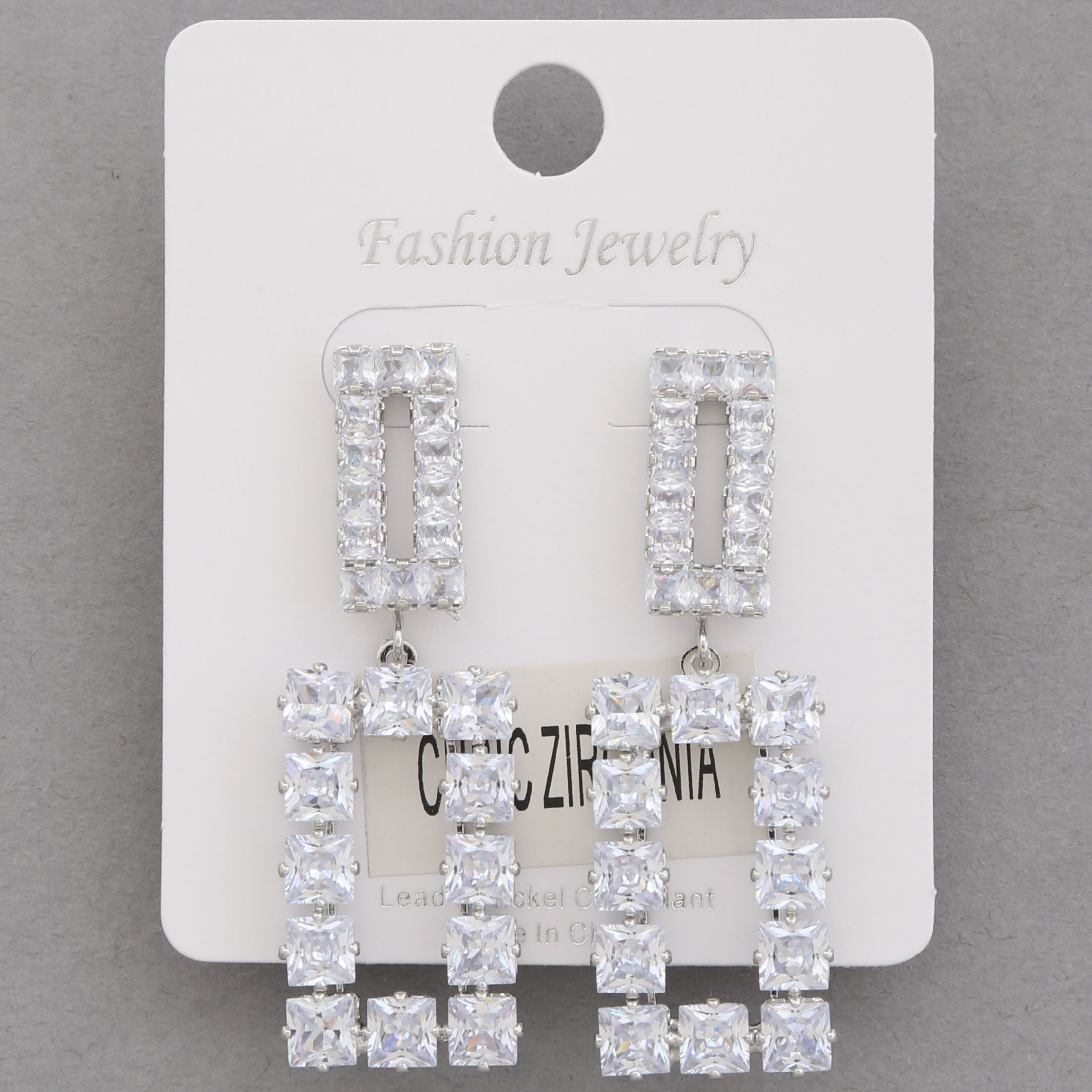RECTANGLE LINK CZ DANGLE EARRING