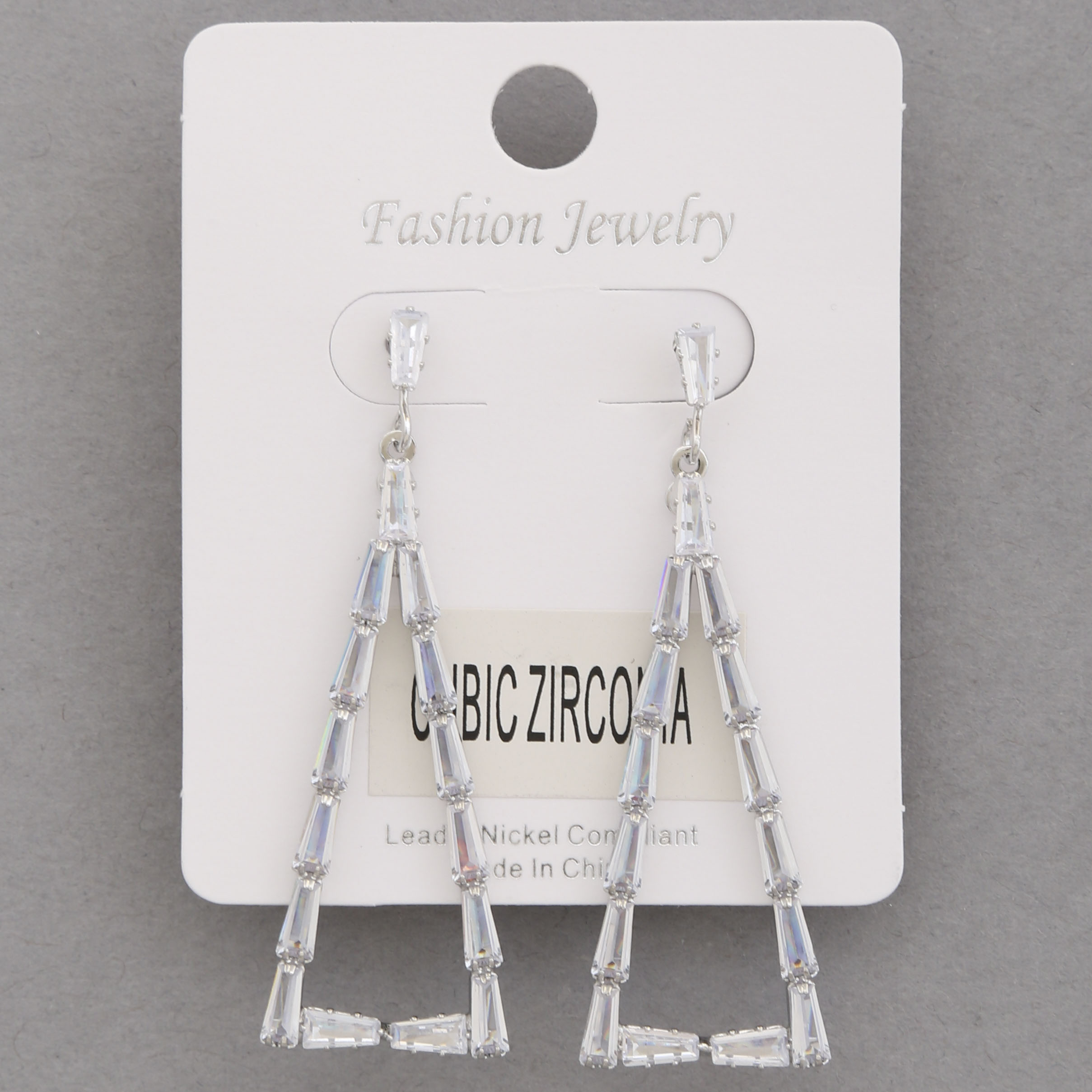 BAGUETTE CZ DROP BRASS EARRING