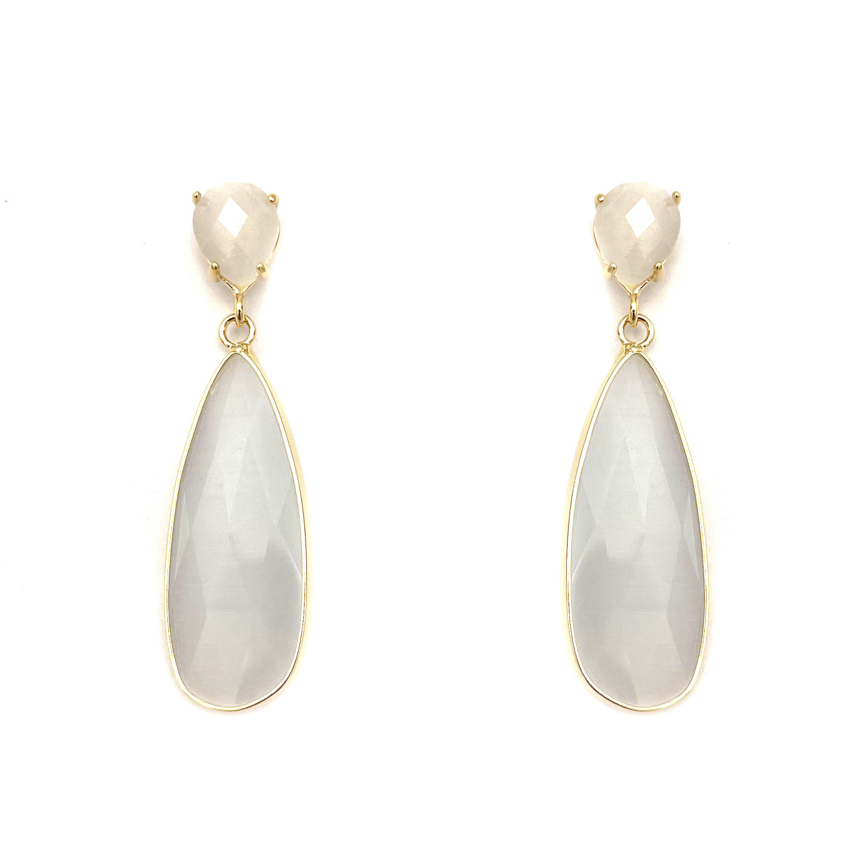 TWO TONE OVAL METAL LAYERED TEARDROP EARRING