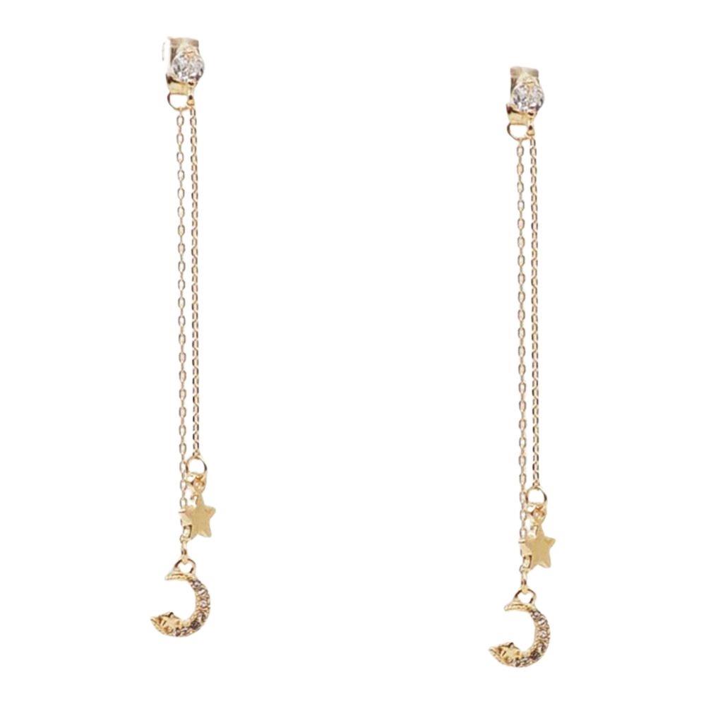 METAL CHAIN MOON STAR DANGLE HOOK EARRINGS