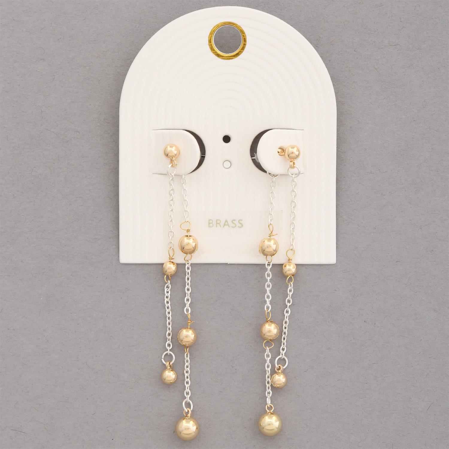 TWO TONE BALL BEAD CHAIN DANGLE EARRING