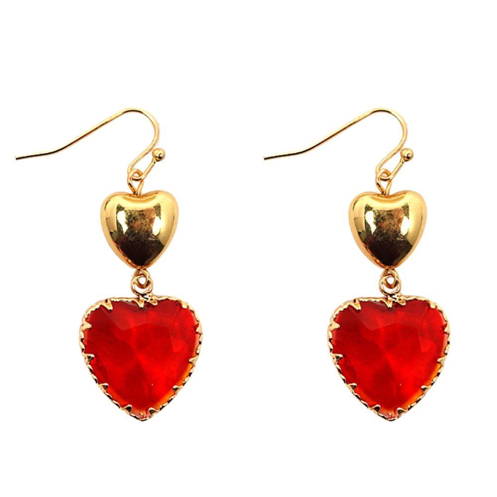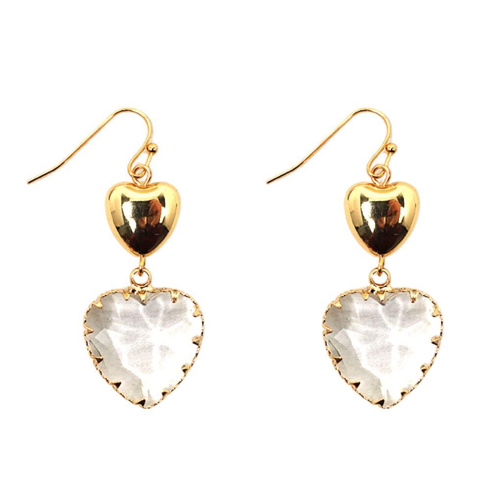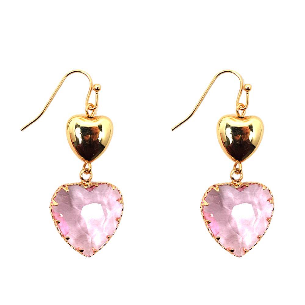 DOUBLE HEART GLASS BEAD DANGLE EARRING