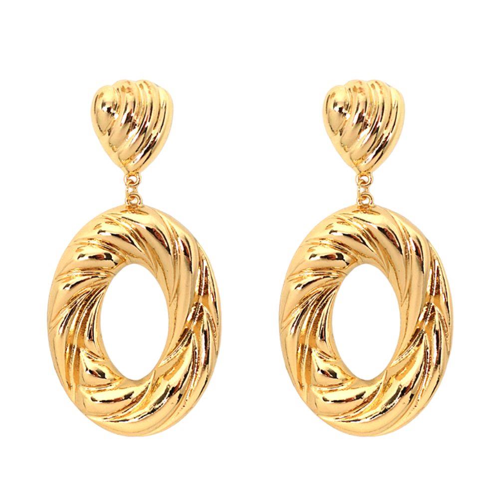 LINED OVAL DANGLE METAL EARRING