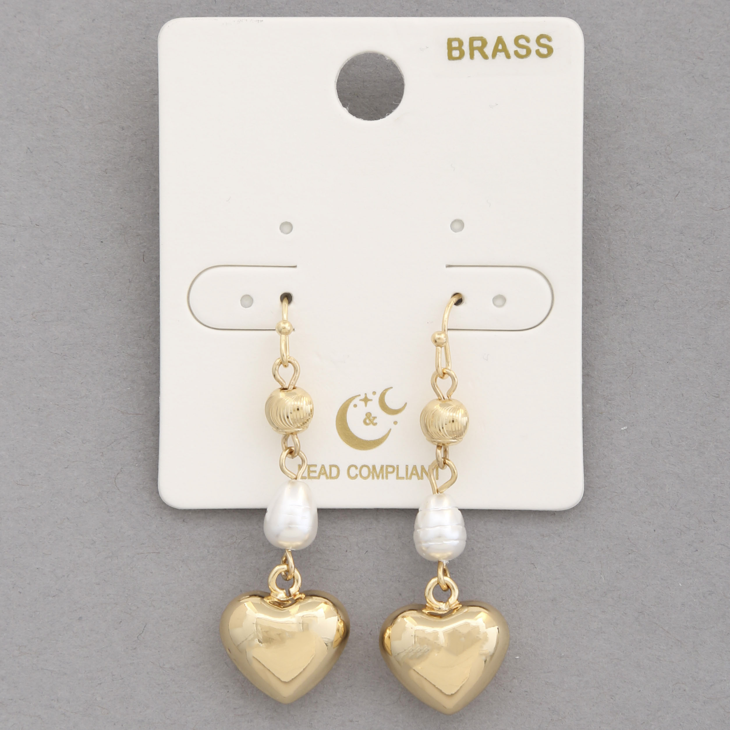 PUFFY HEART CHARM BEADED DANGLE EARRING