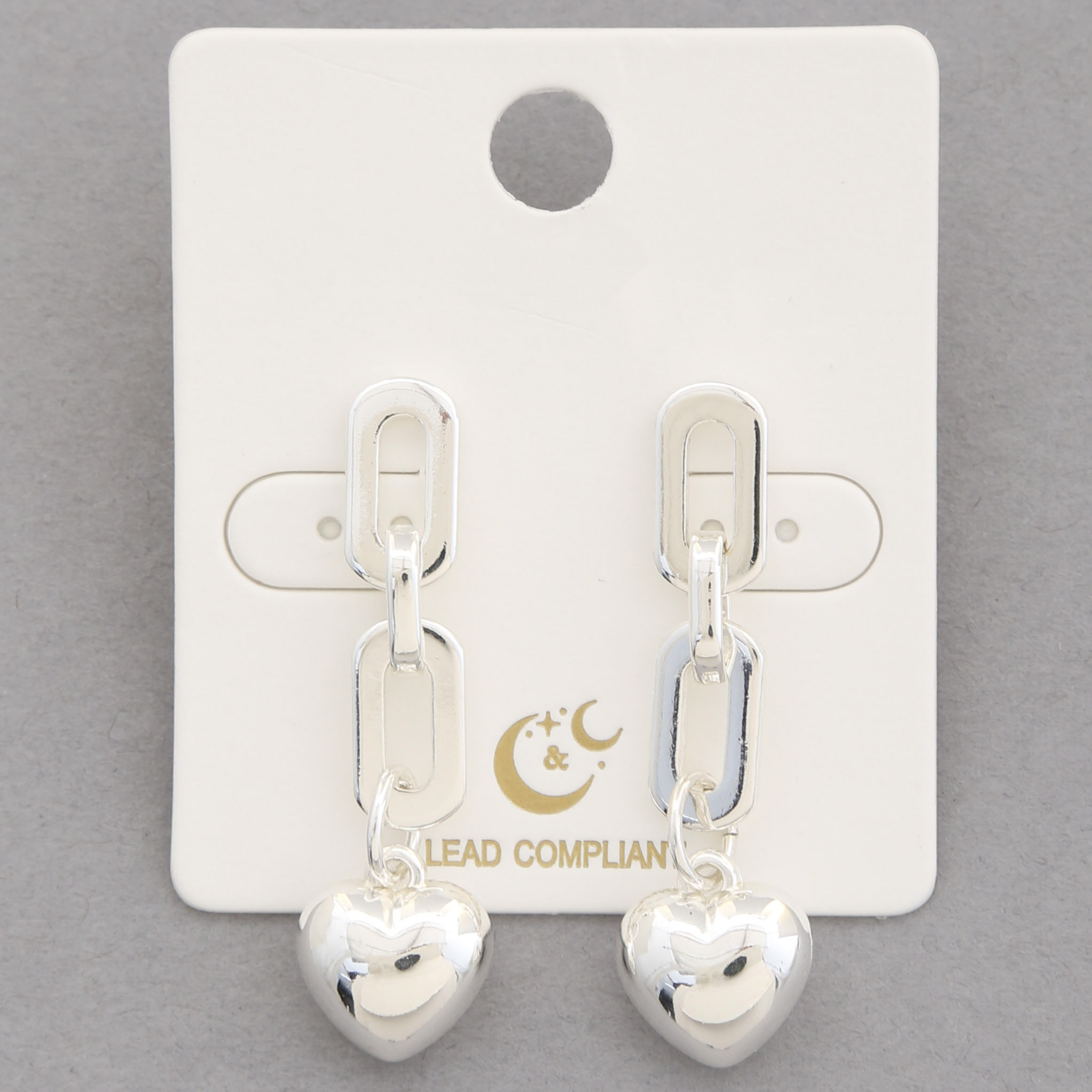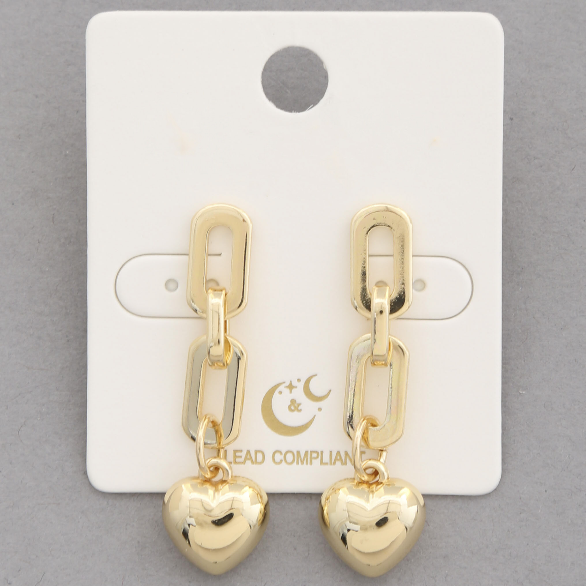 PUFFY HEART OVAL LINK DANGLE EARRING