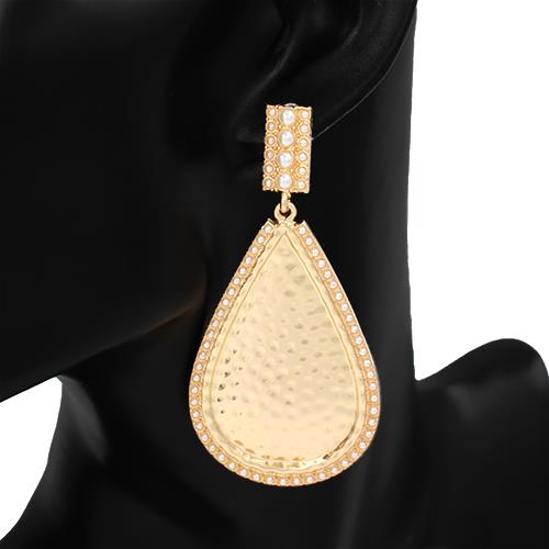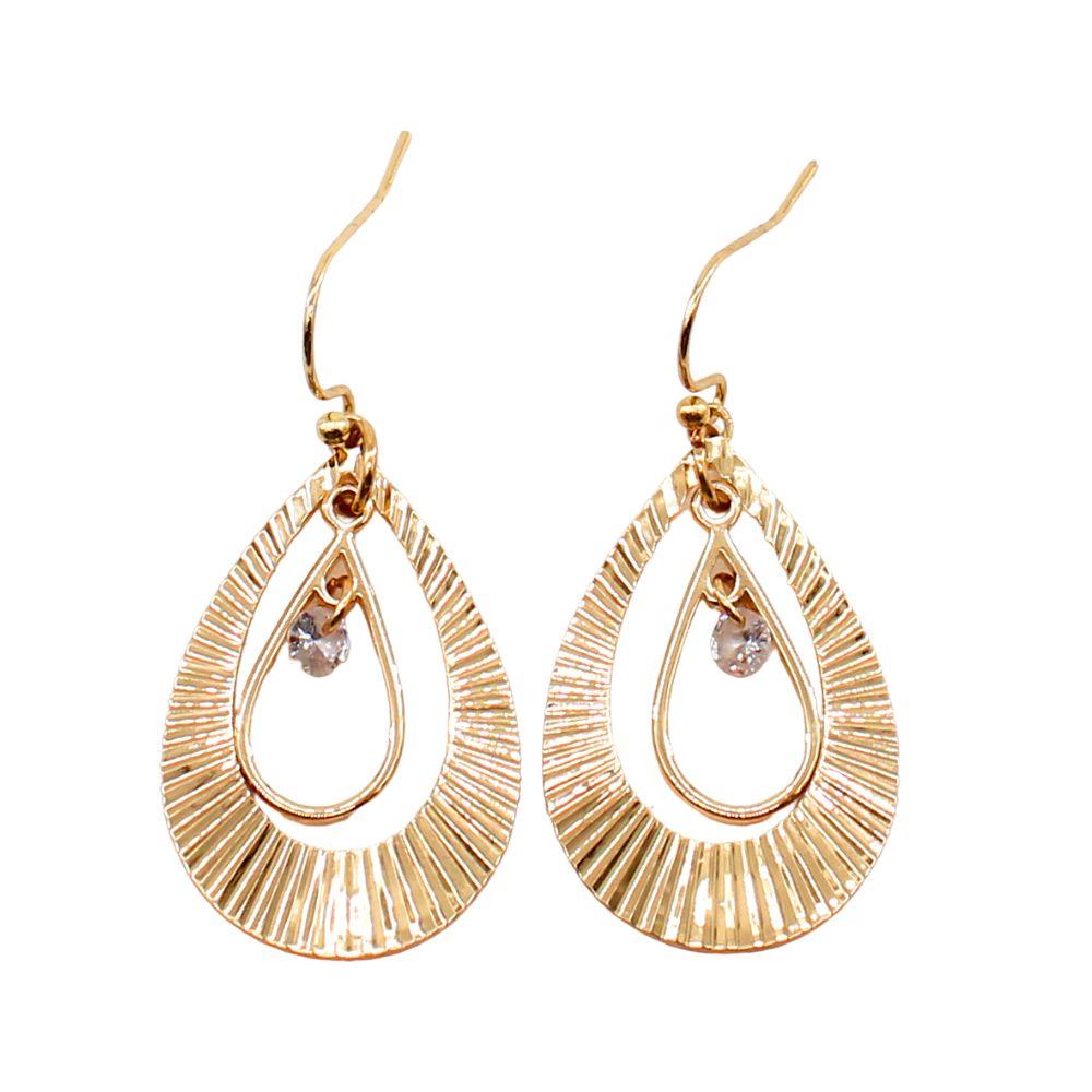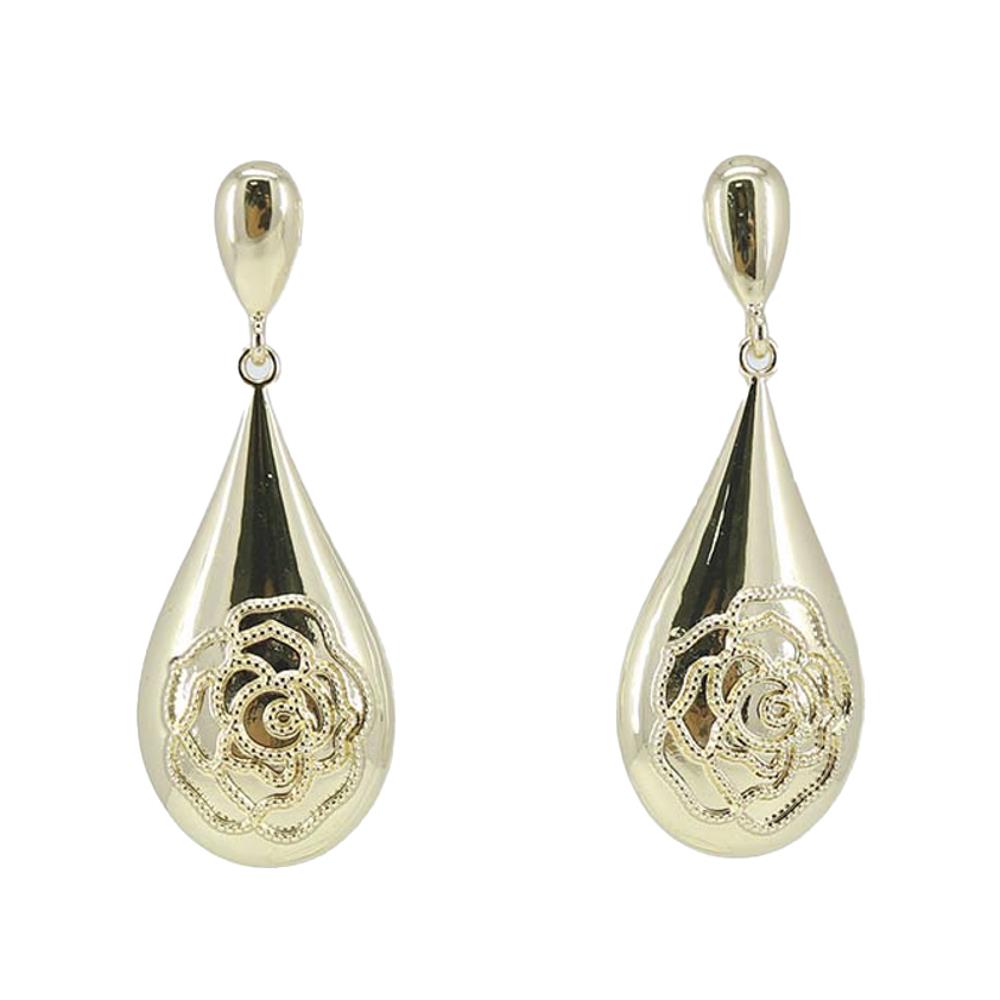 GOLD TEARDROP DANGLE EARRINGS WITH INTRICATE ROSE DETAIL