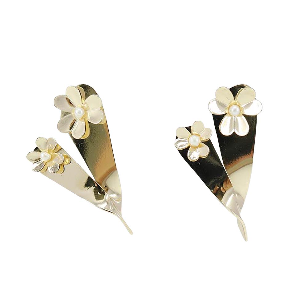 FLOWER HEART SHAPE PEAR BEAD DANGLE EARRING