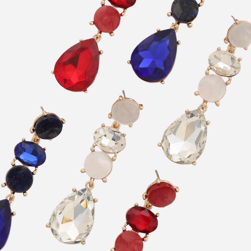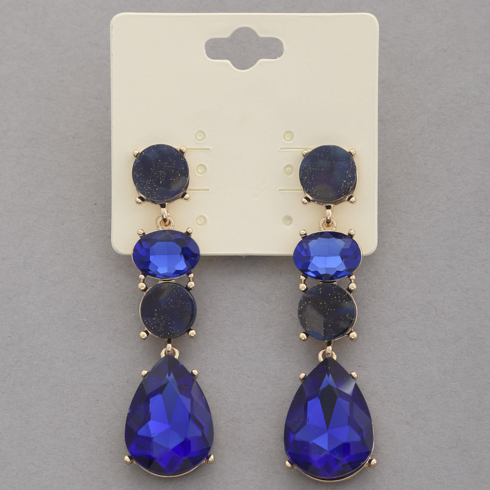 OVAL TEARDROP CRYSTAL LINK DANGLE EARRING