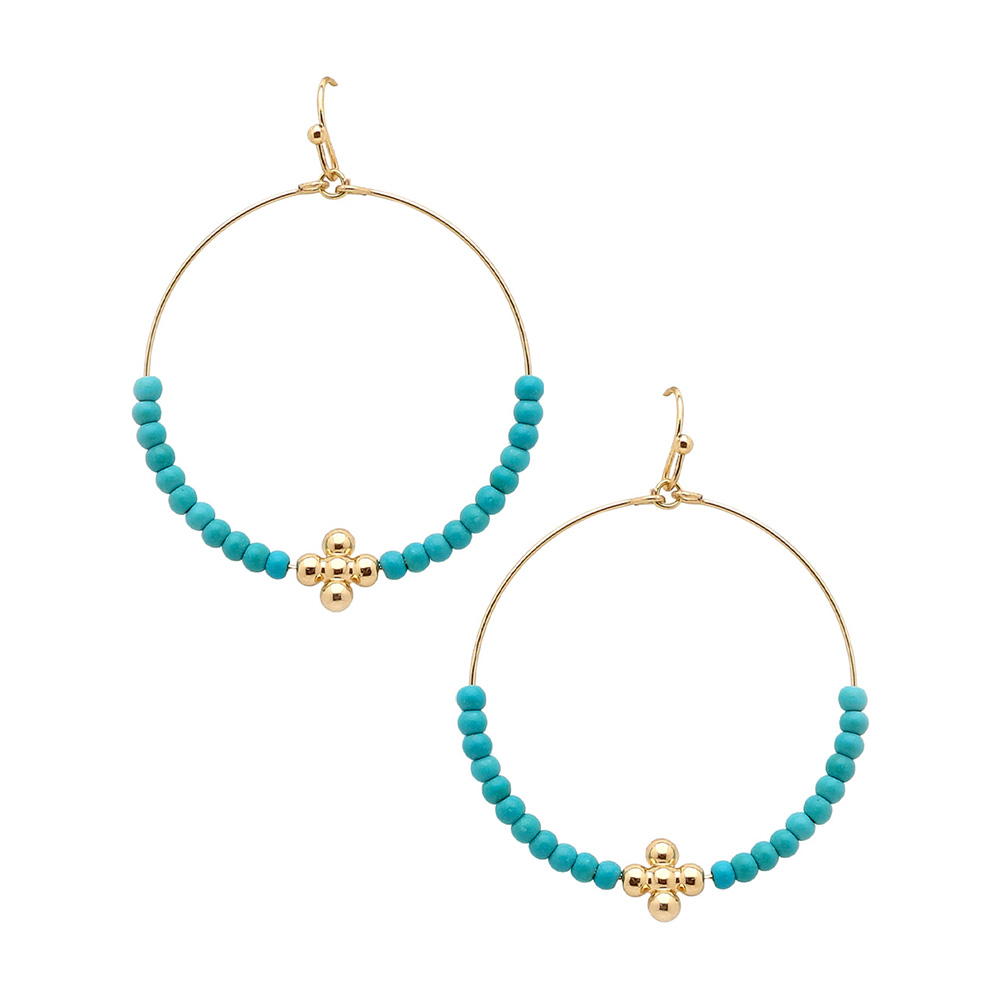 WESTERN STYLE TEARDROP TURQUOISE BEAD DANGLE EARRING