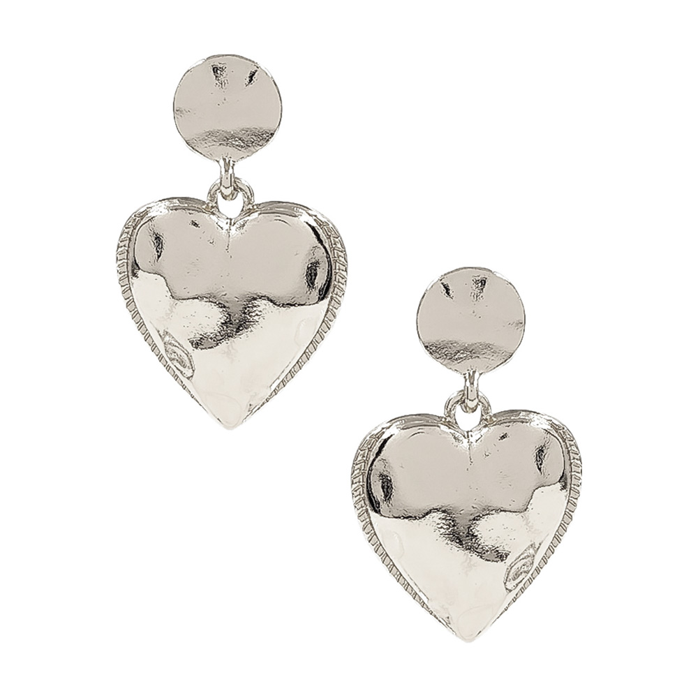 STAINLESS STEEL HUGGIE HEART DANGLE EARRING