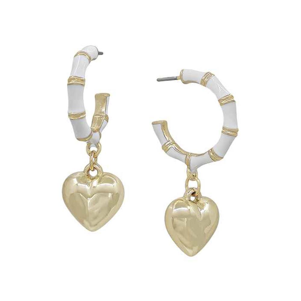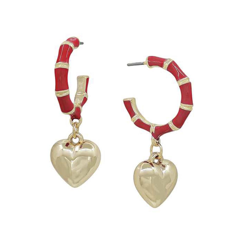 HEART CHARM BAMBOO EPOXY COLOR COATED HOOP EARRING