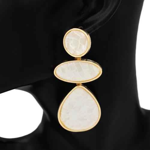 2" MOTHER OF PEARL SHELL POST ROUND METAL DROP EARRINGS