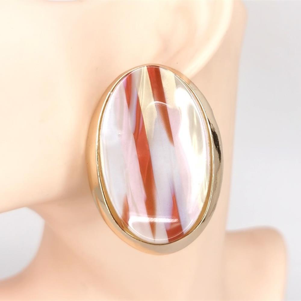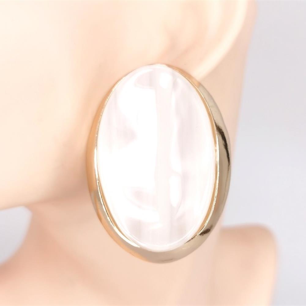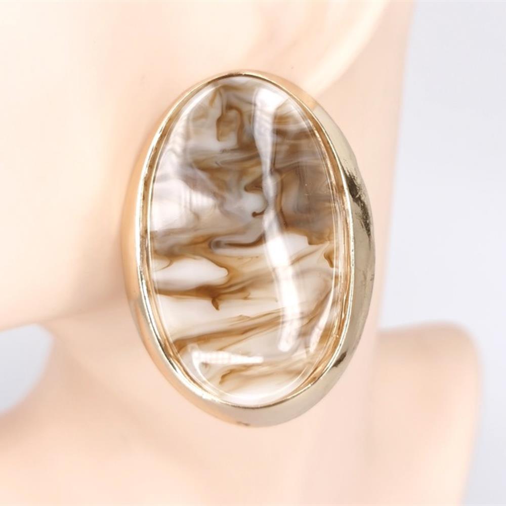 RESIN MARBLE OVAL STATEMENT EARRING