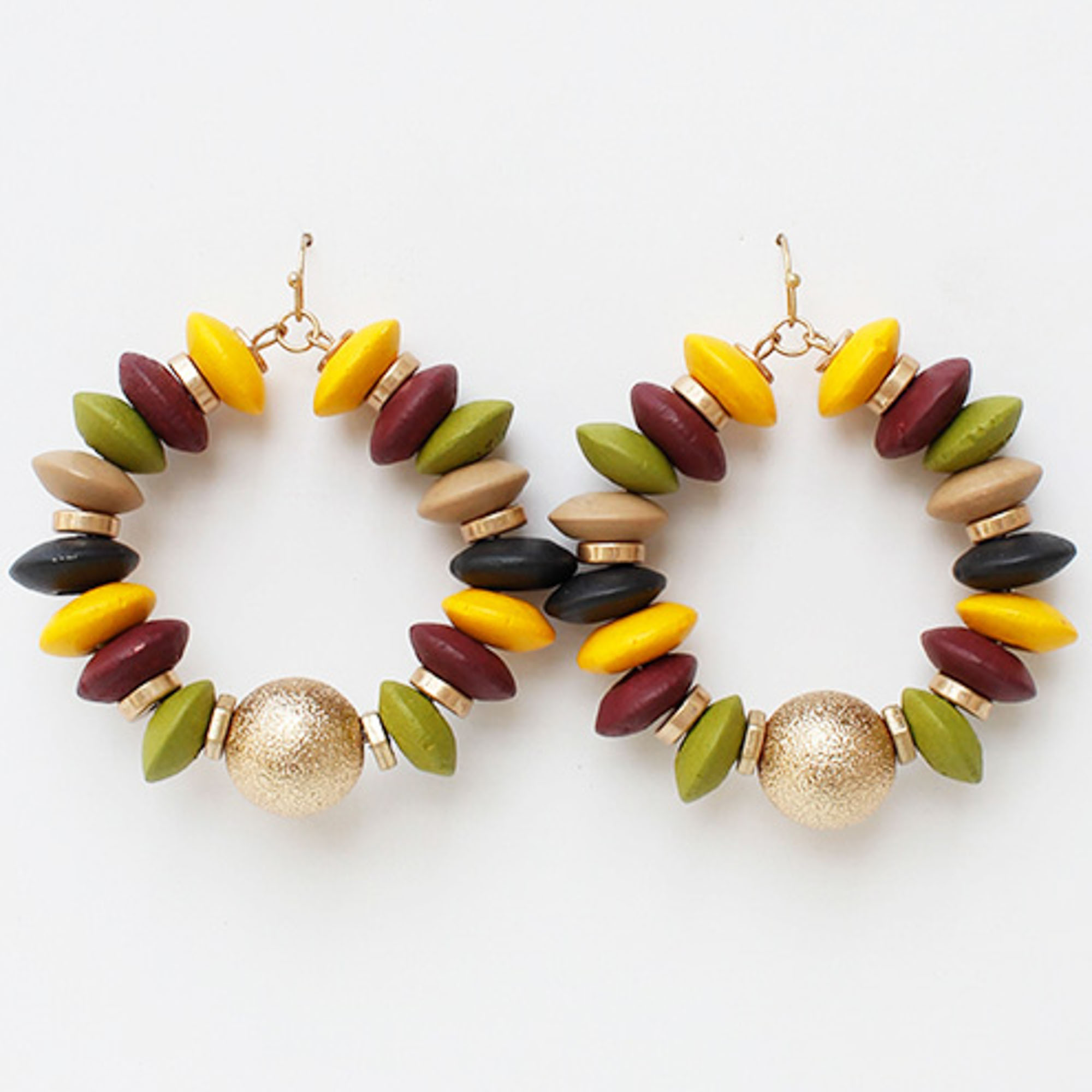 WOOD BALL ROUND DANGLE EARRING