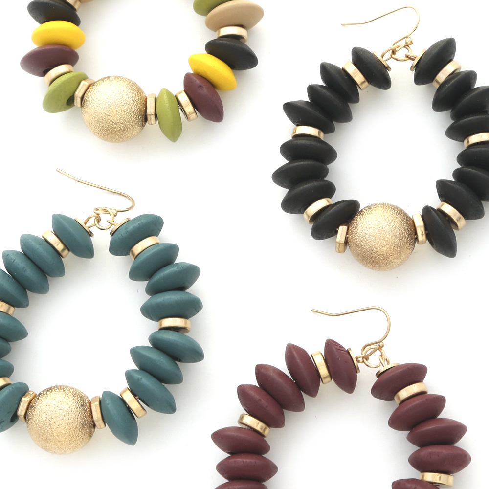 CUBE BEAD OPEN CIRCLE EARRING