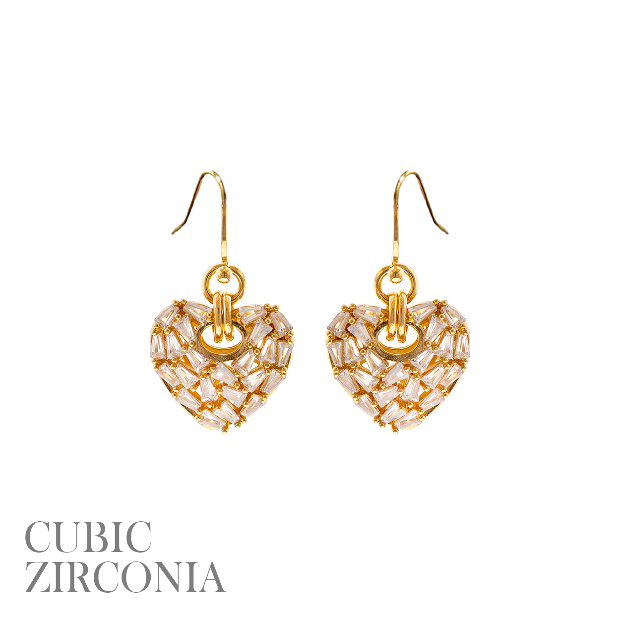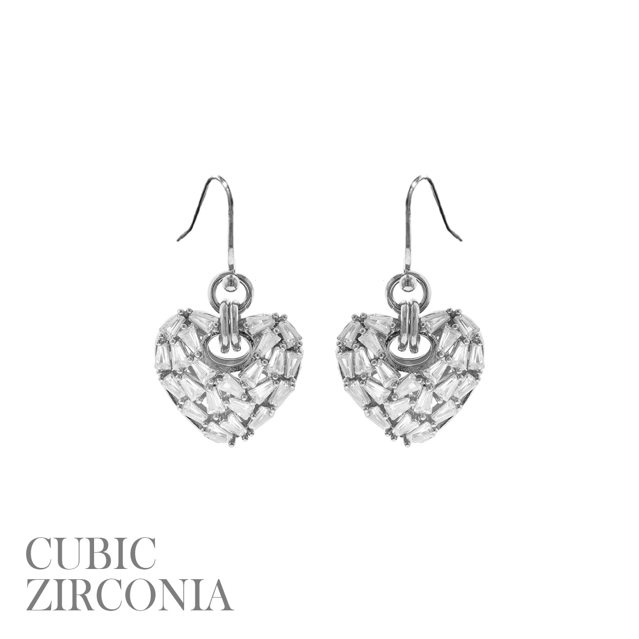 CZ TRAPEZOID HEART EARRING