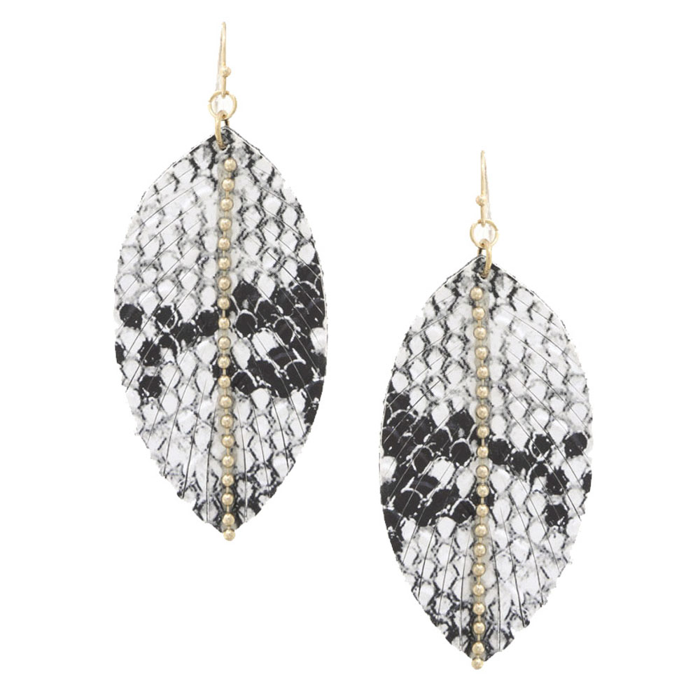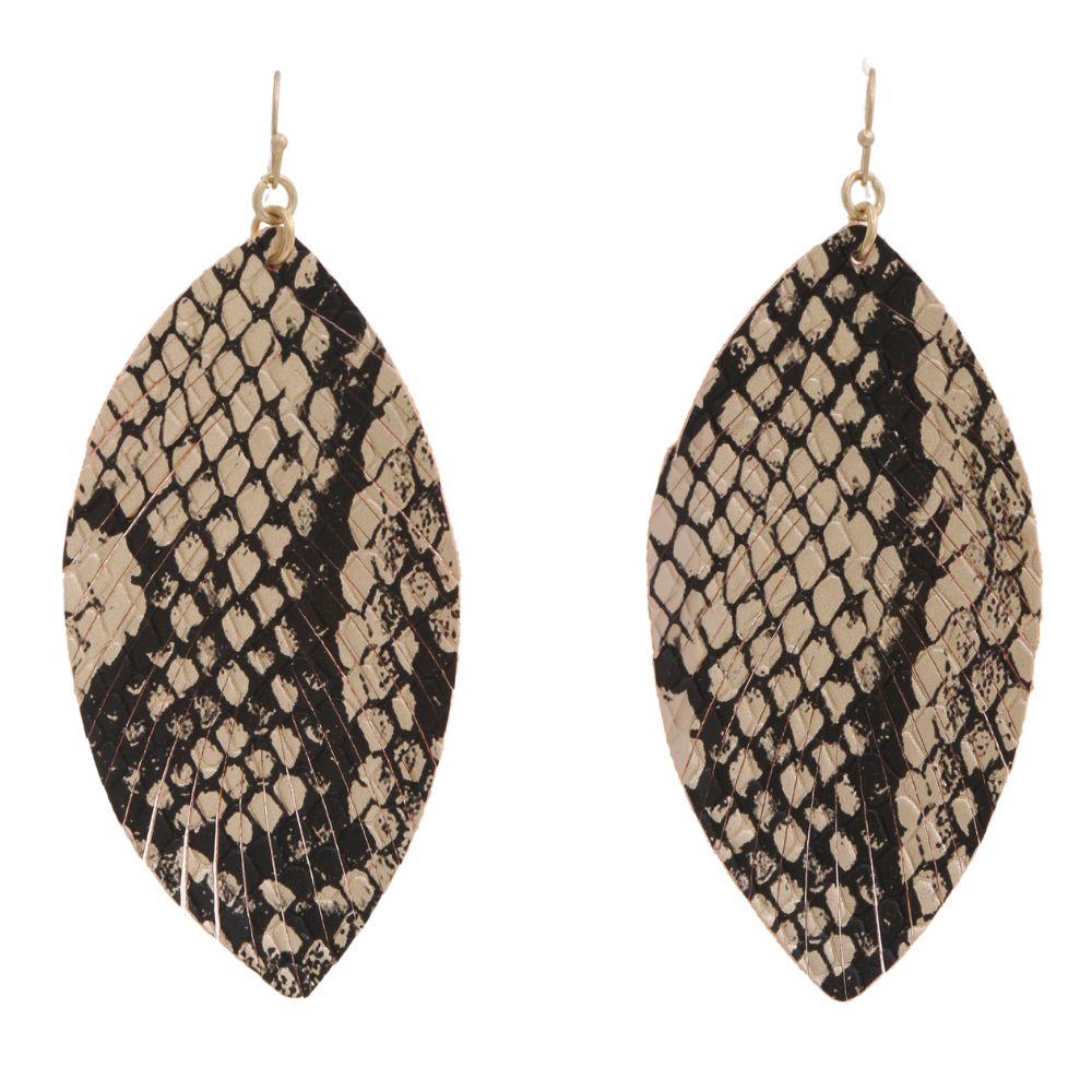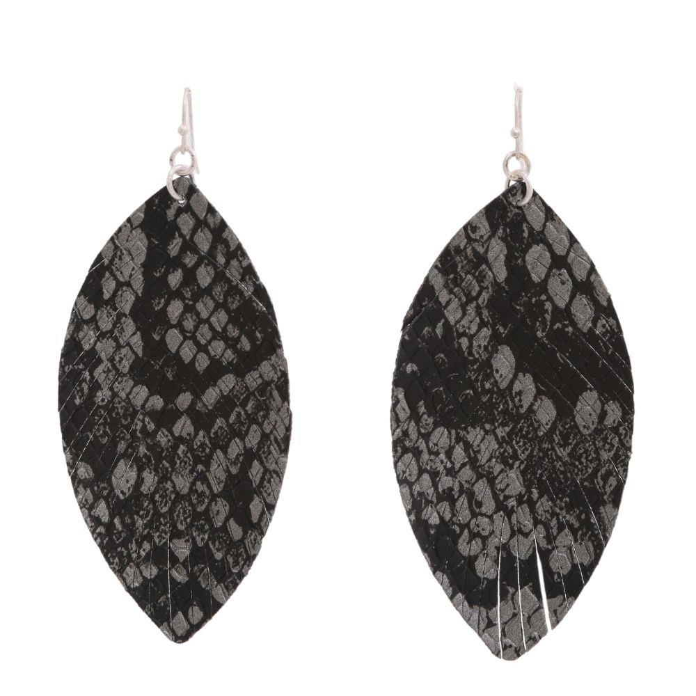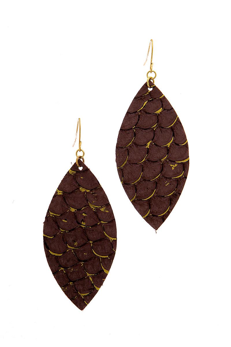 LEATHER SNAKESKIN LEAF DANGLE EARRING