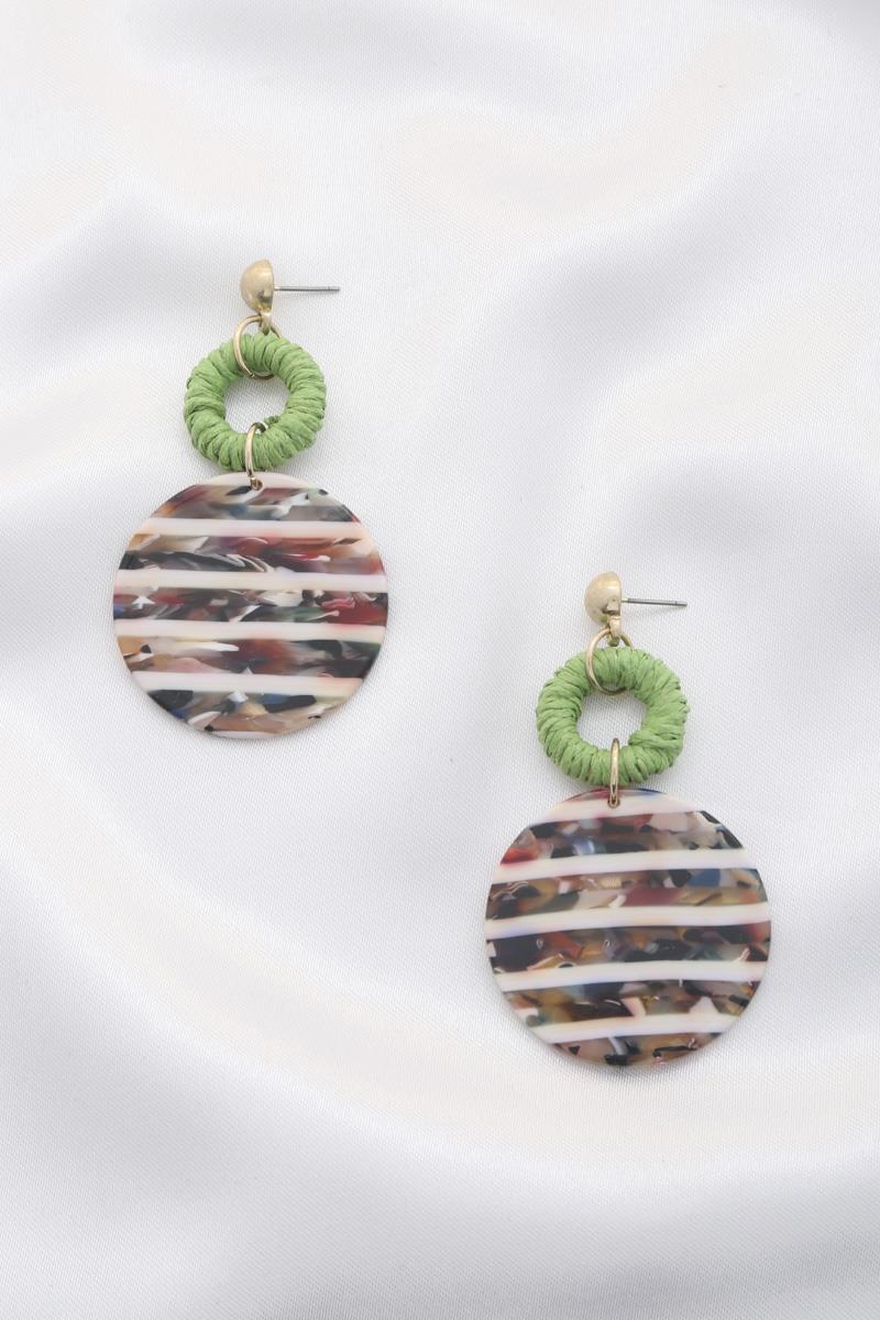WOVEN CIRCLE ACETATE RECTANGLE EARRING