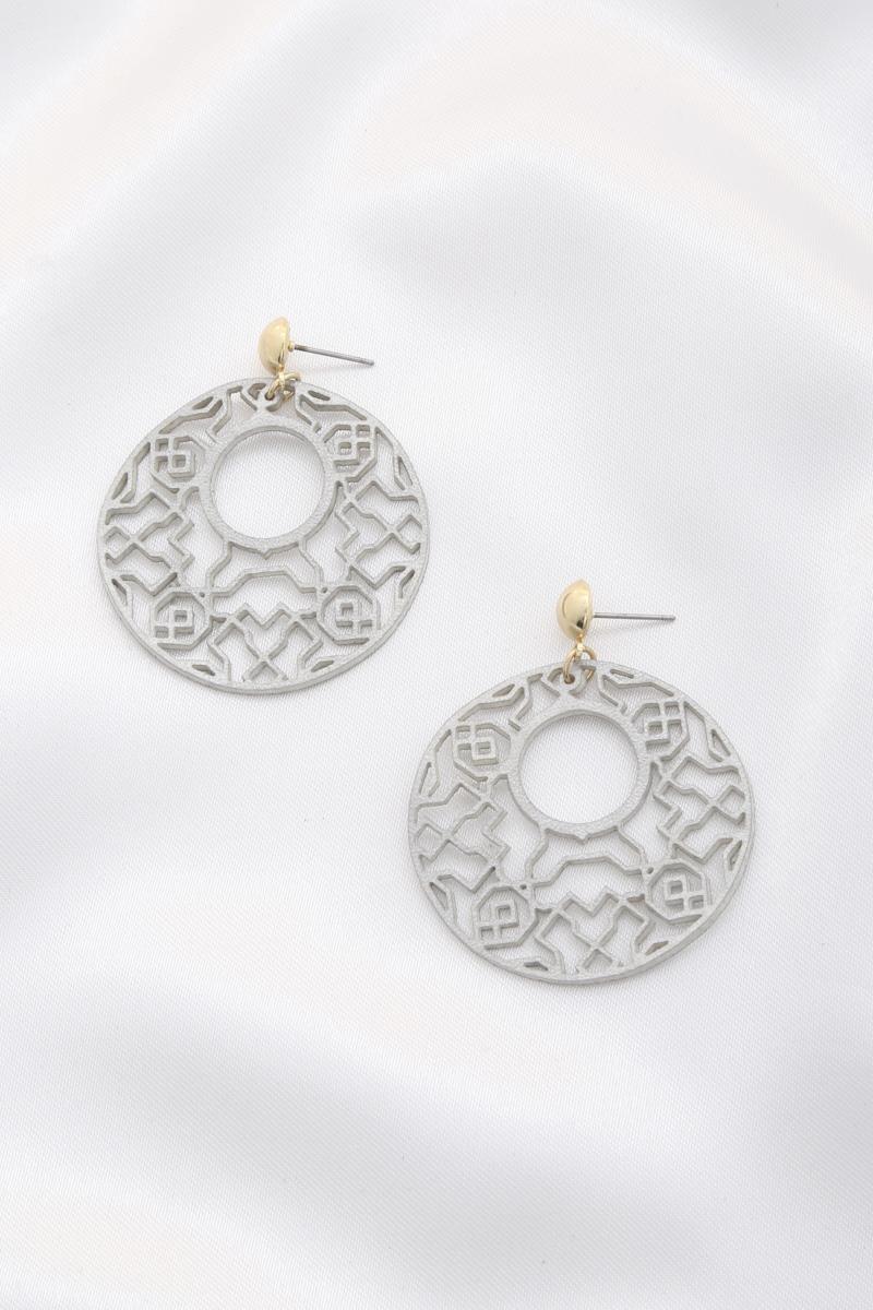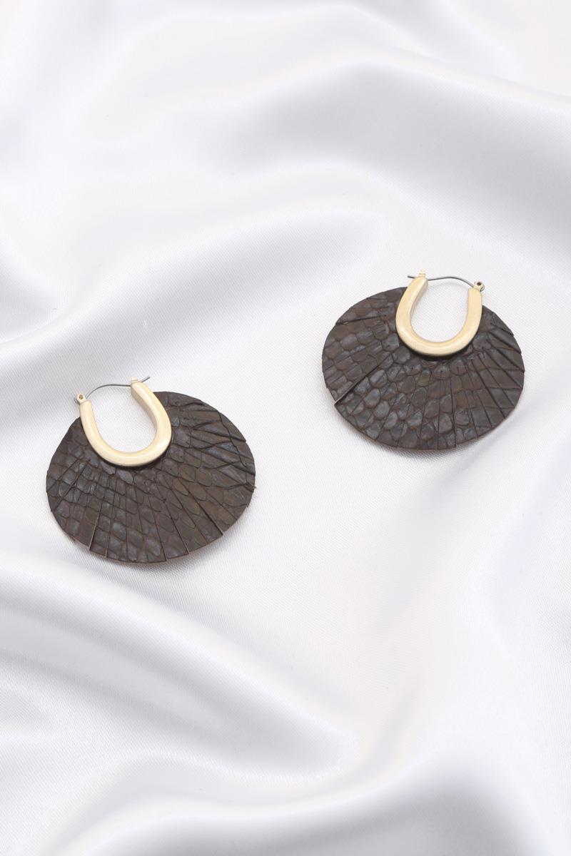 CUT OUT PU LEATHER ROUND EARRING