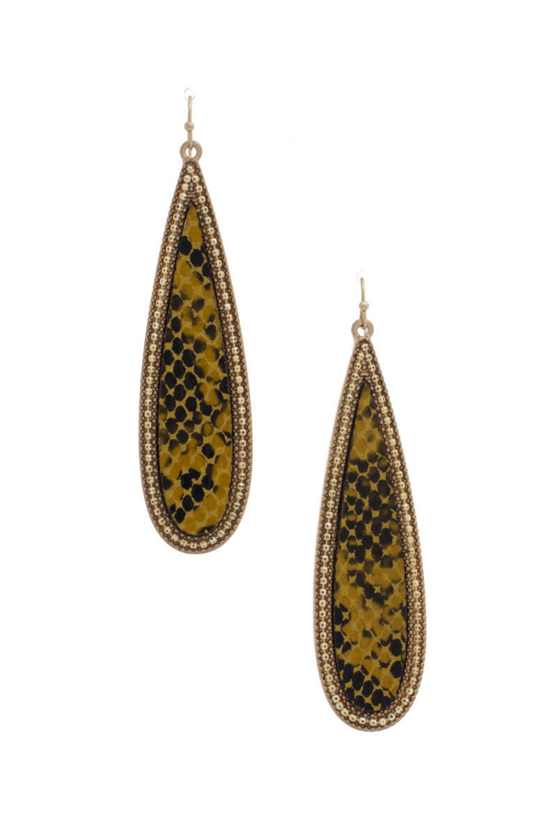 ANIMAL PRINT LONG TEARDROP SHAPE EARRING