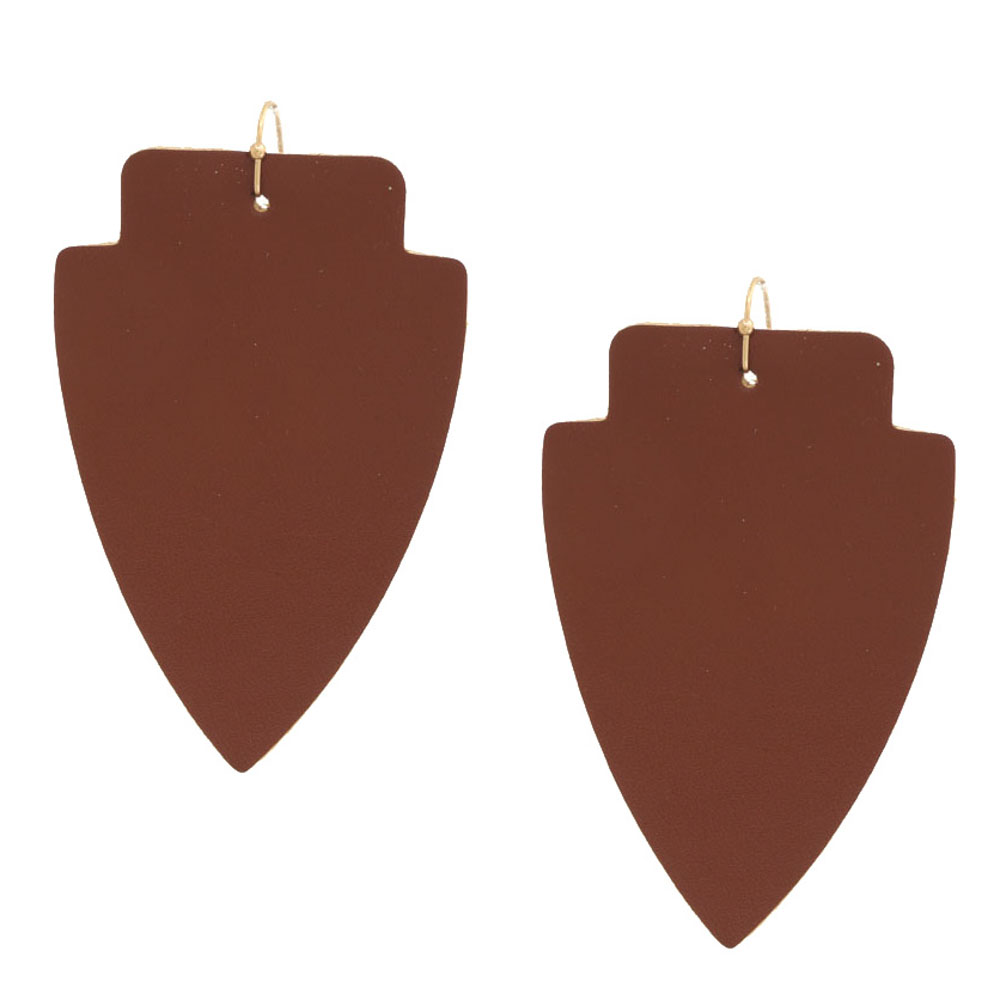 FAUX LEATHER ANIMAL PRINT LEAF SHAPE HOOK EARRING