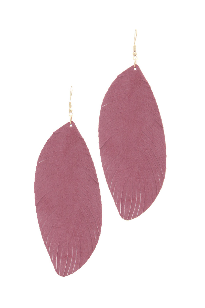 SOLID FRAY EGDE GENUINE LEATHER DROP EARRING