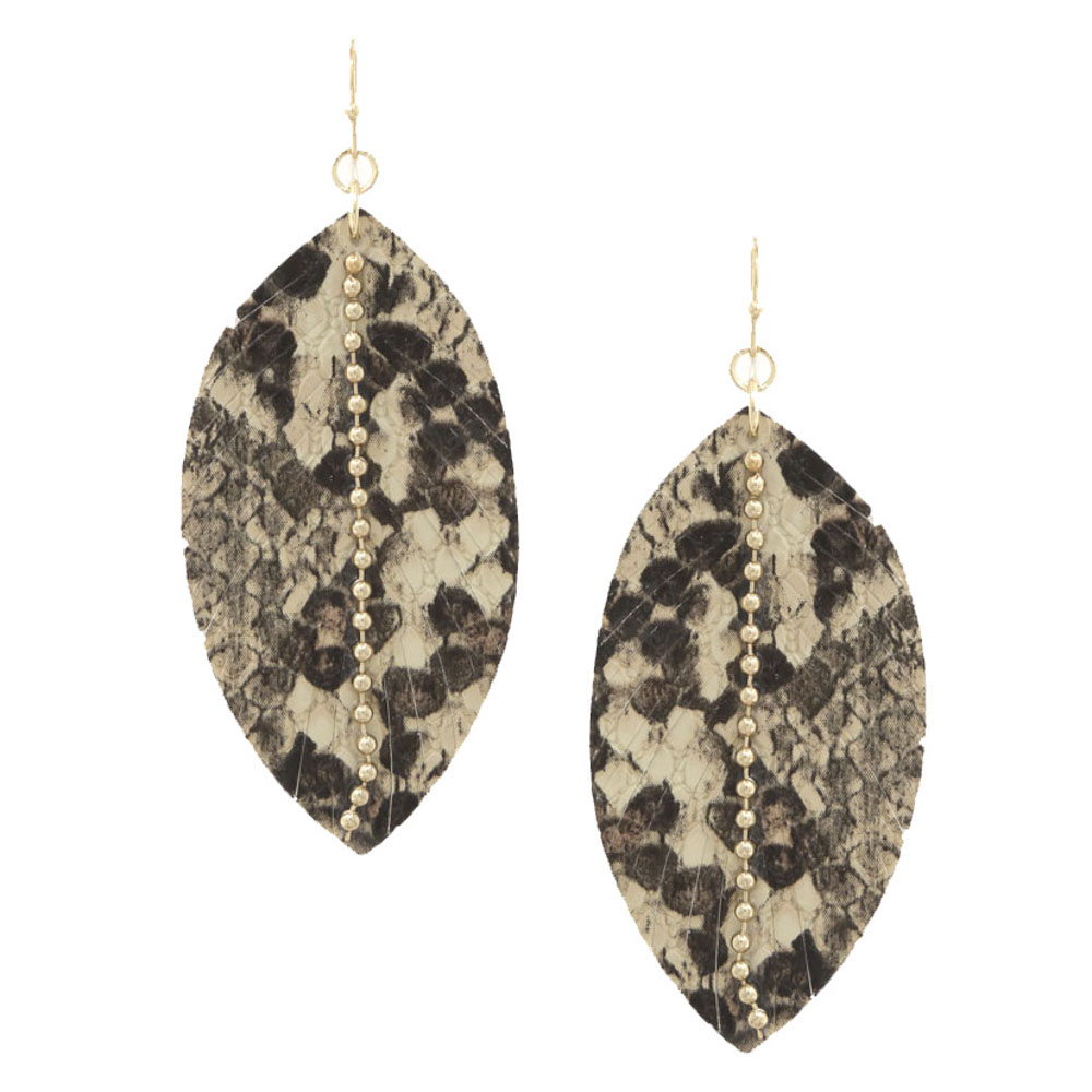 STONE ANIMAL PRINT LEAF LEATHER DANGLE EARRING