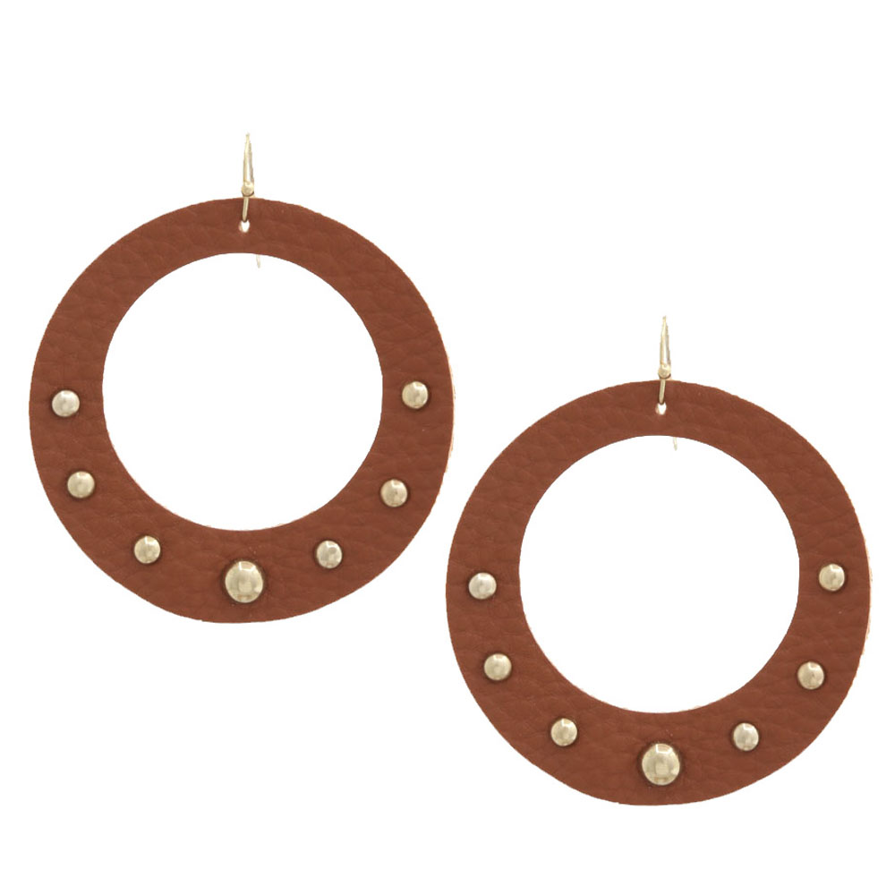 FAUX LEATHER ROUND STUDDED EARRING