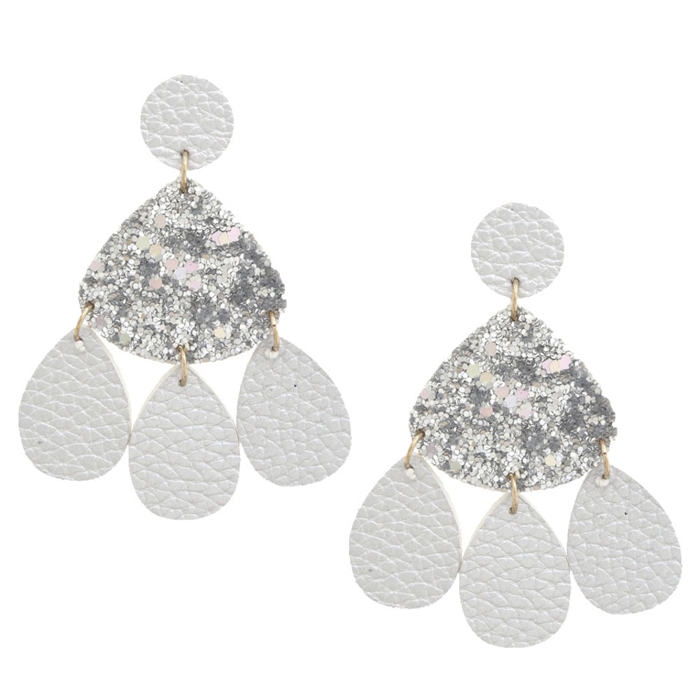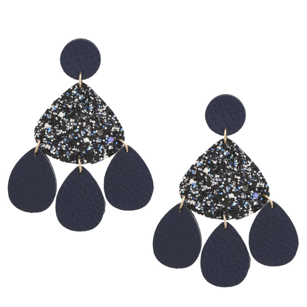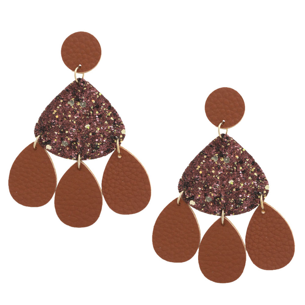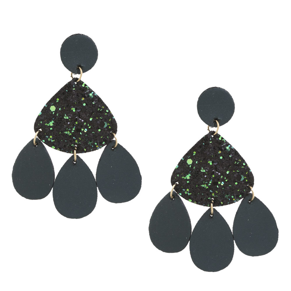 LEATHER GLITTER DANGLE EARRING