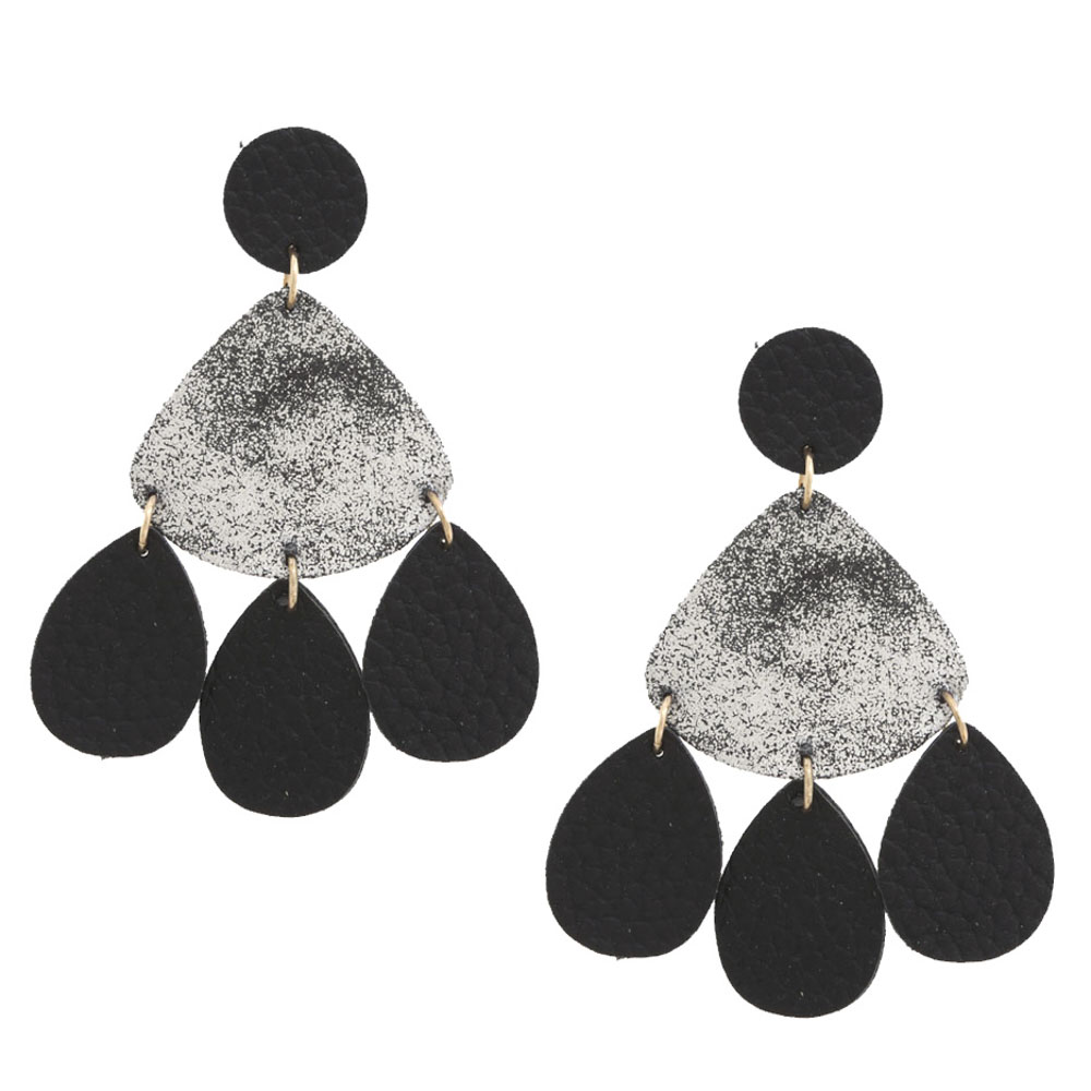 GENUINE LEATHER TEARDROP EARRING