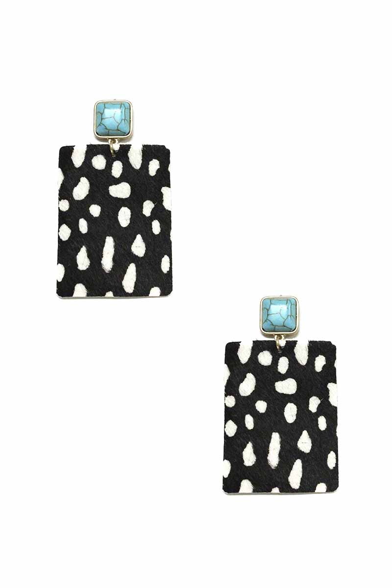 ANIMAL PRINT GENUINE LEATHER DROP EARRING
