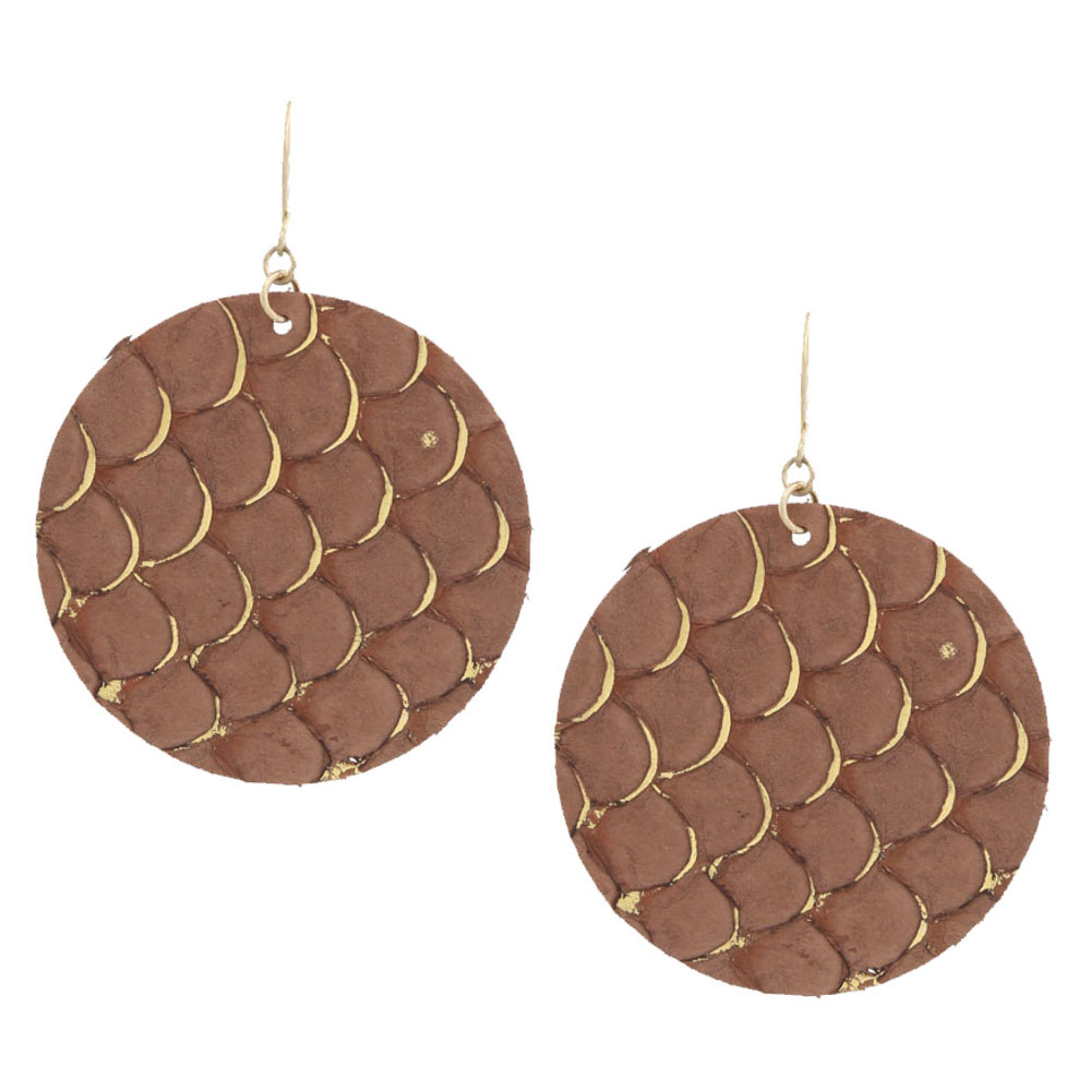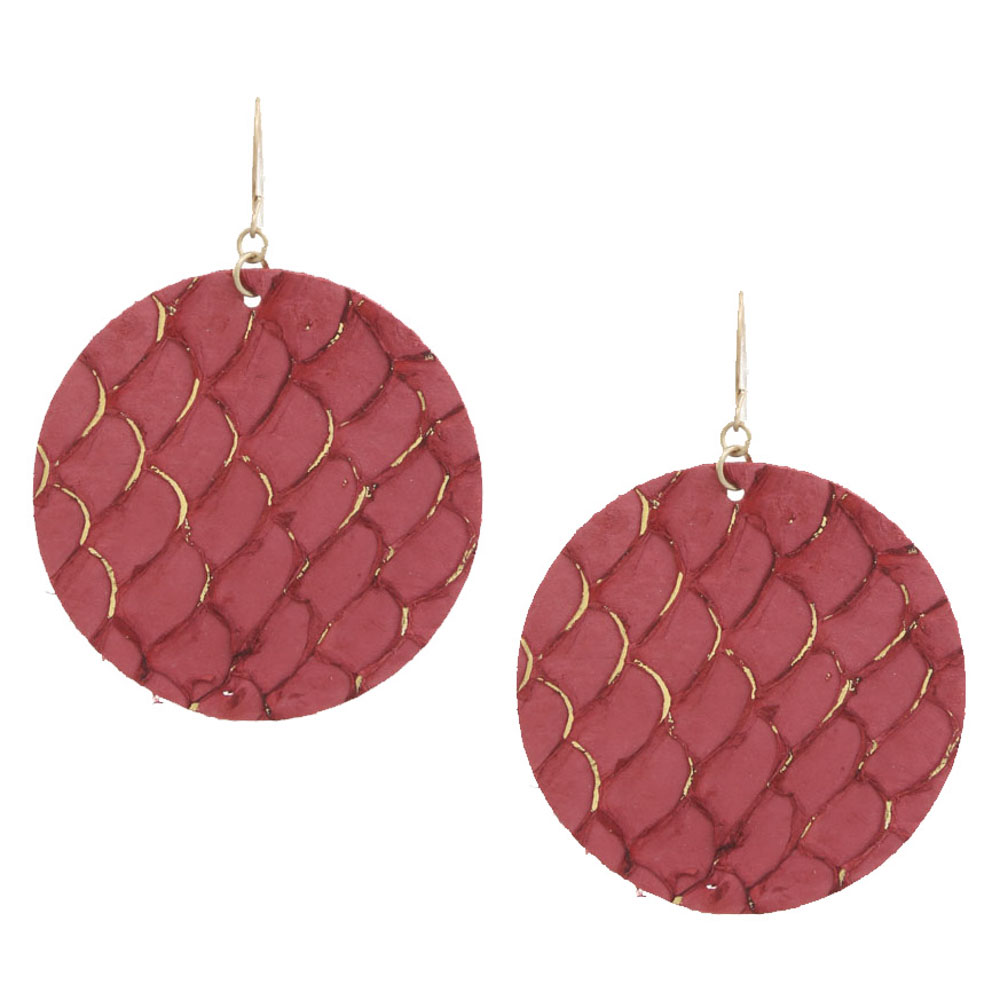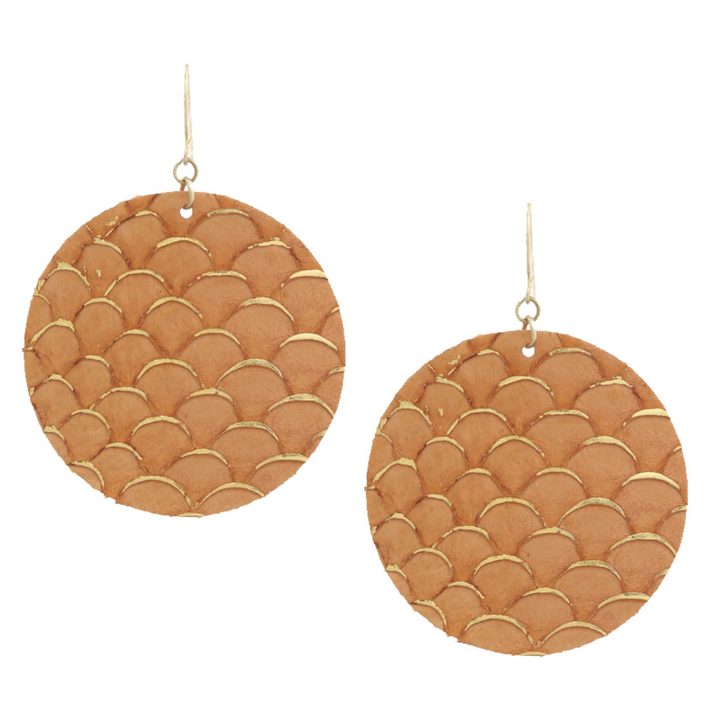 ROUND GENUINE LEATHER DANGLE EARRING