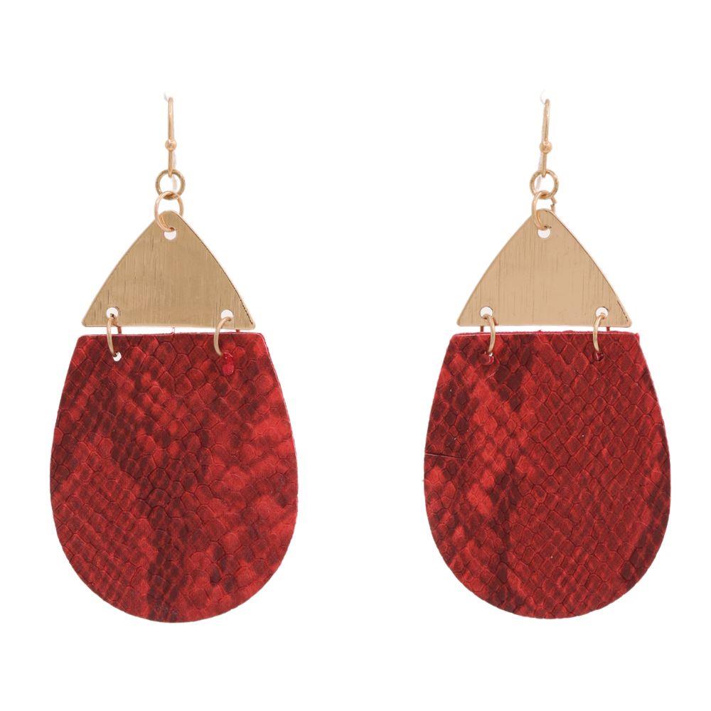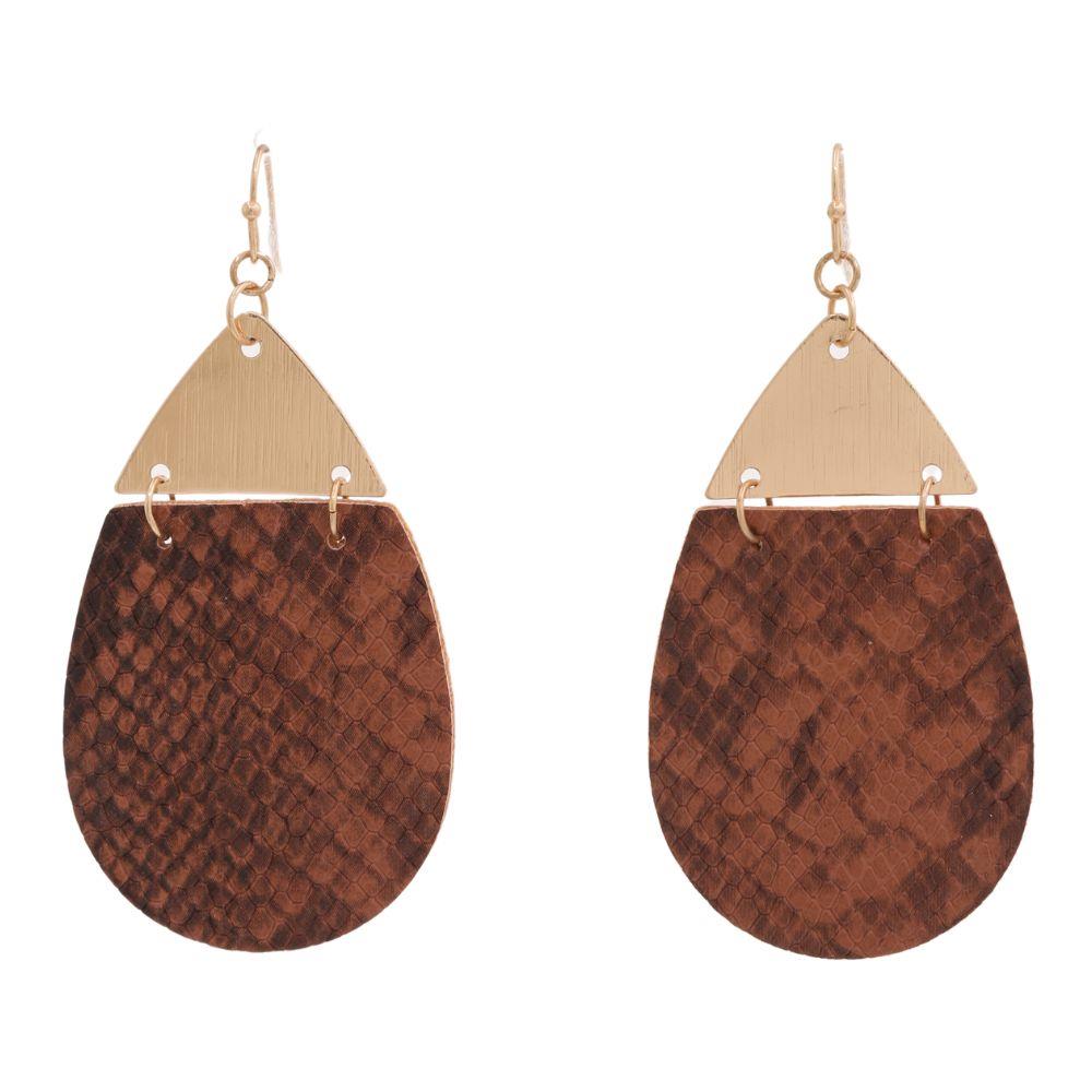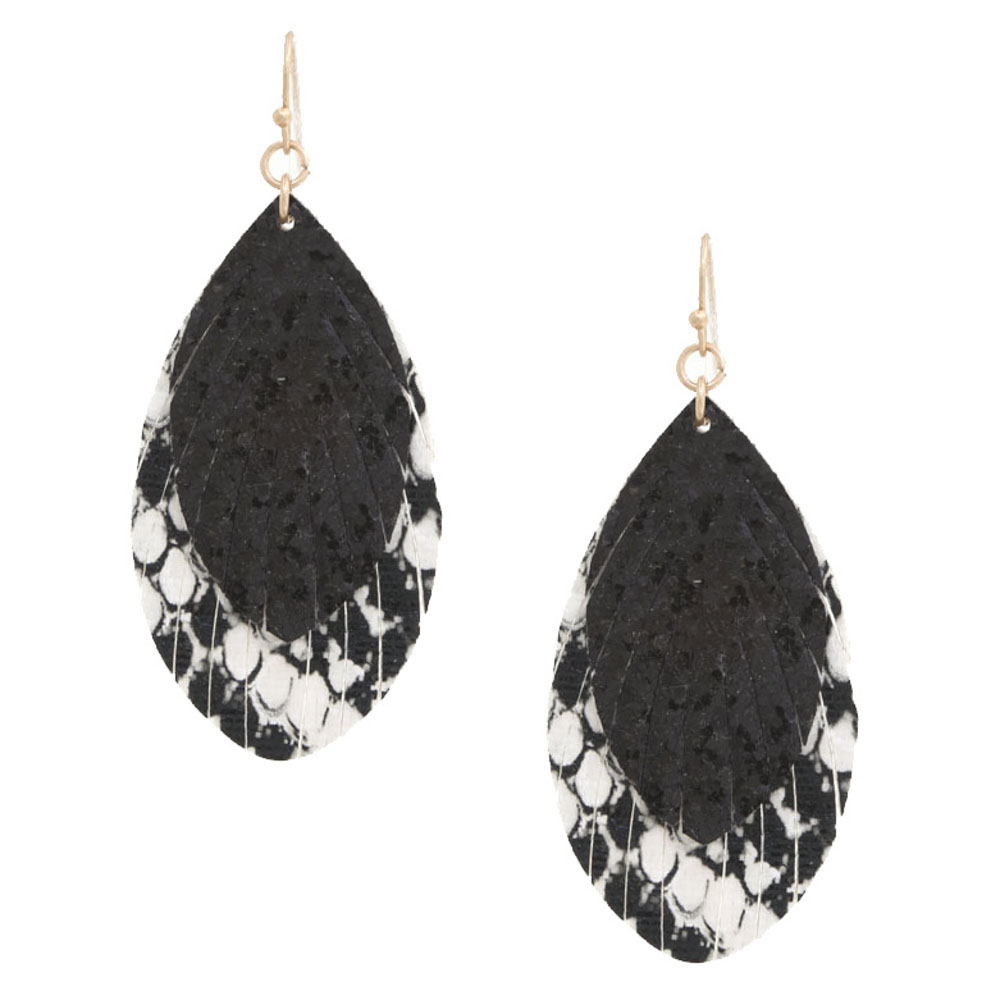 LEATHER METAL TEARDROP DANGLE EARRING