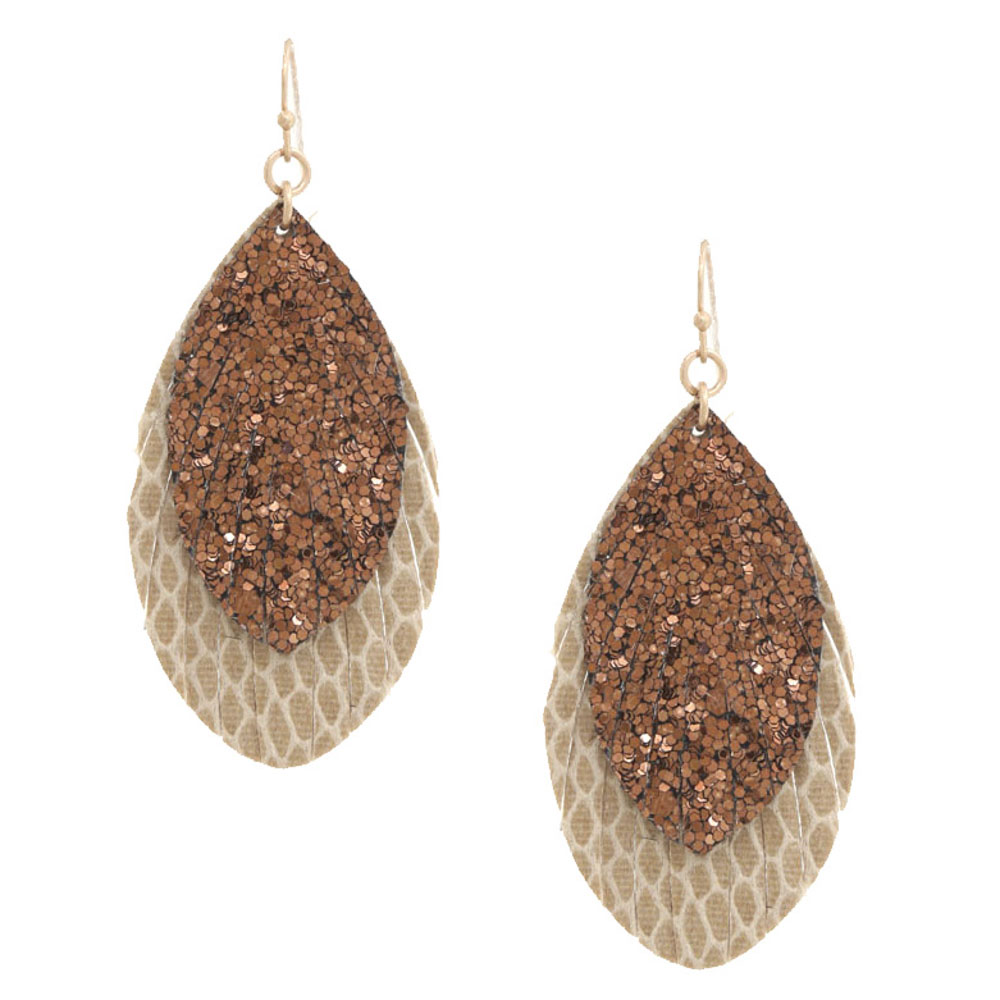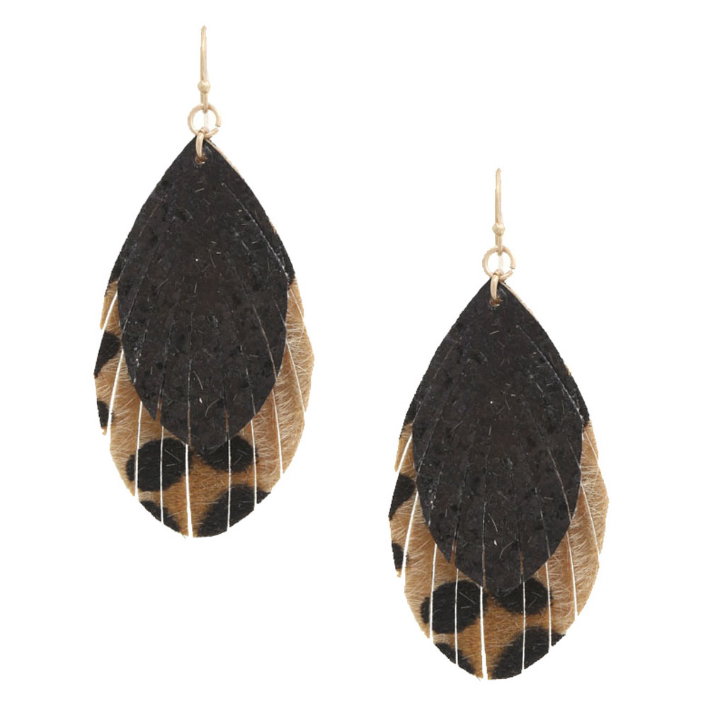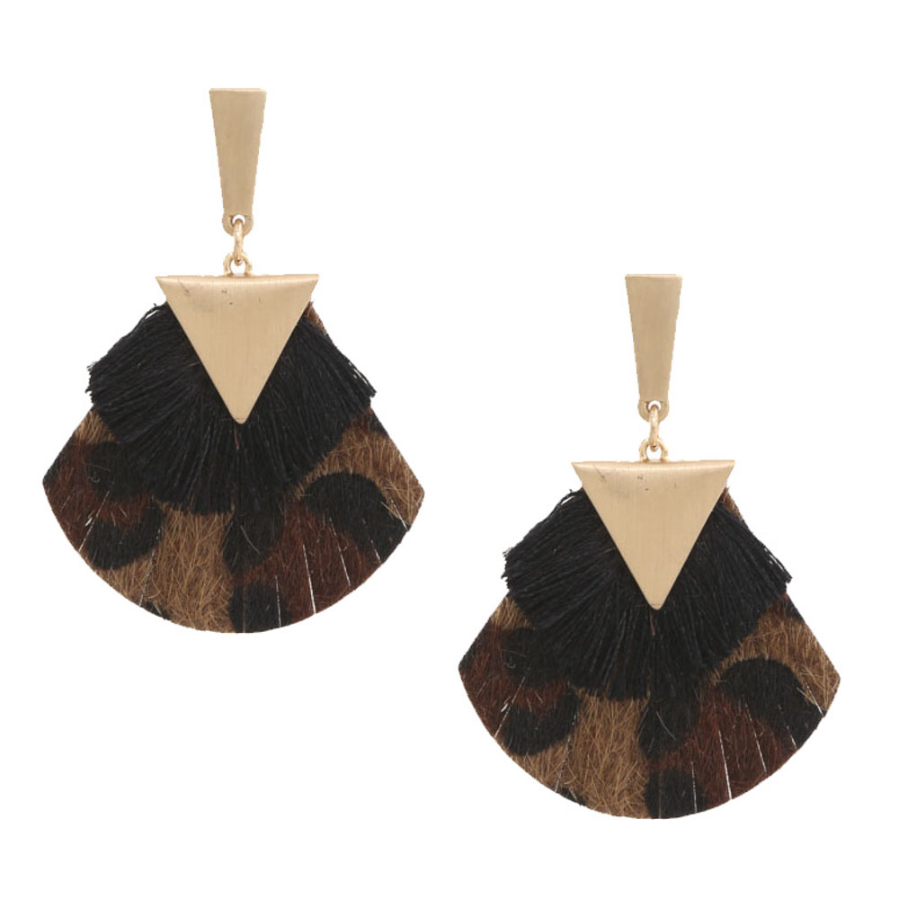 ANIMAL PRINT FAN TASSEL DANGLE EARRING