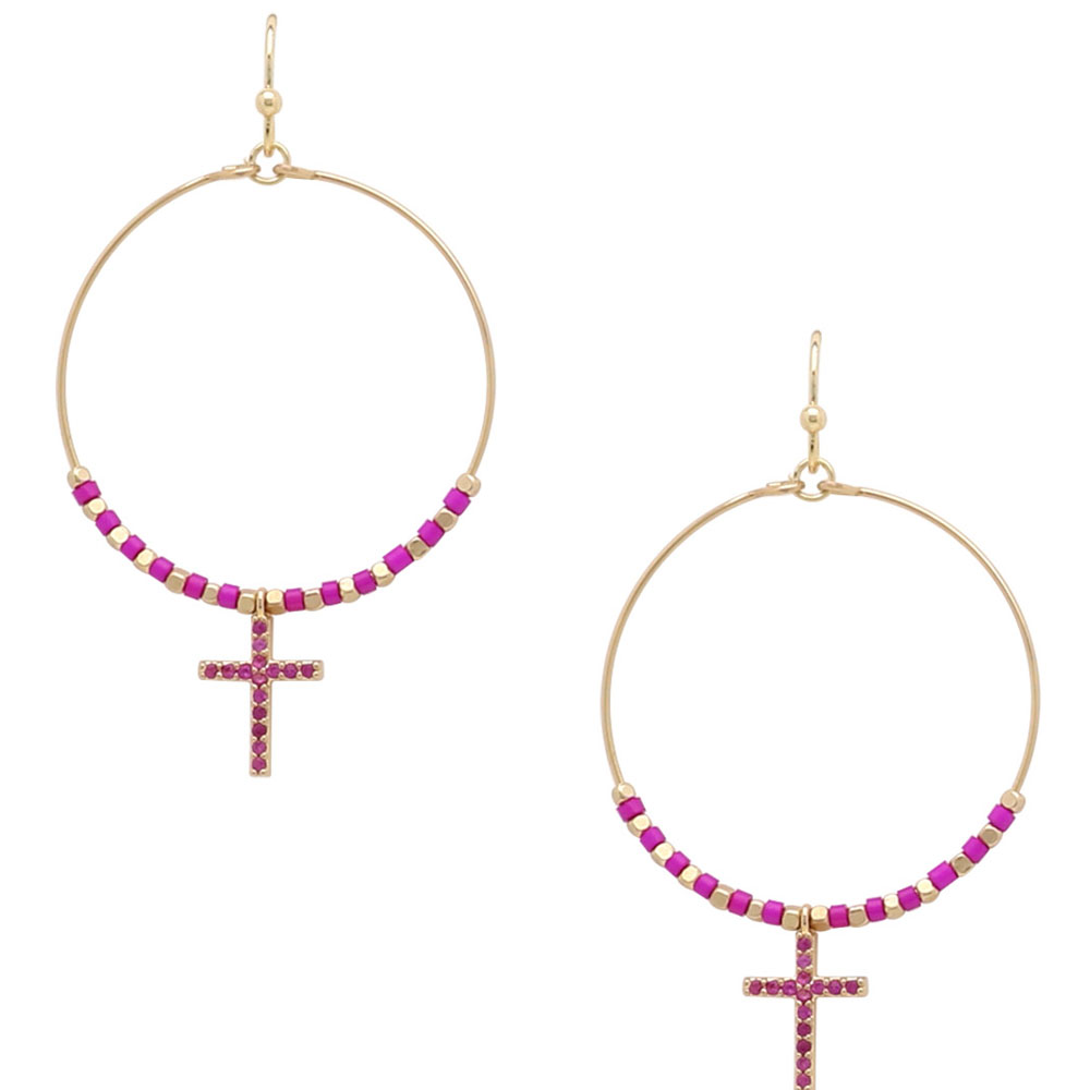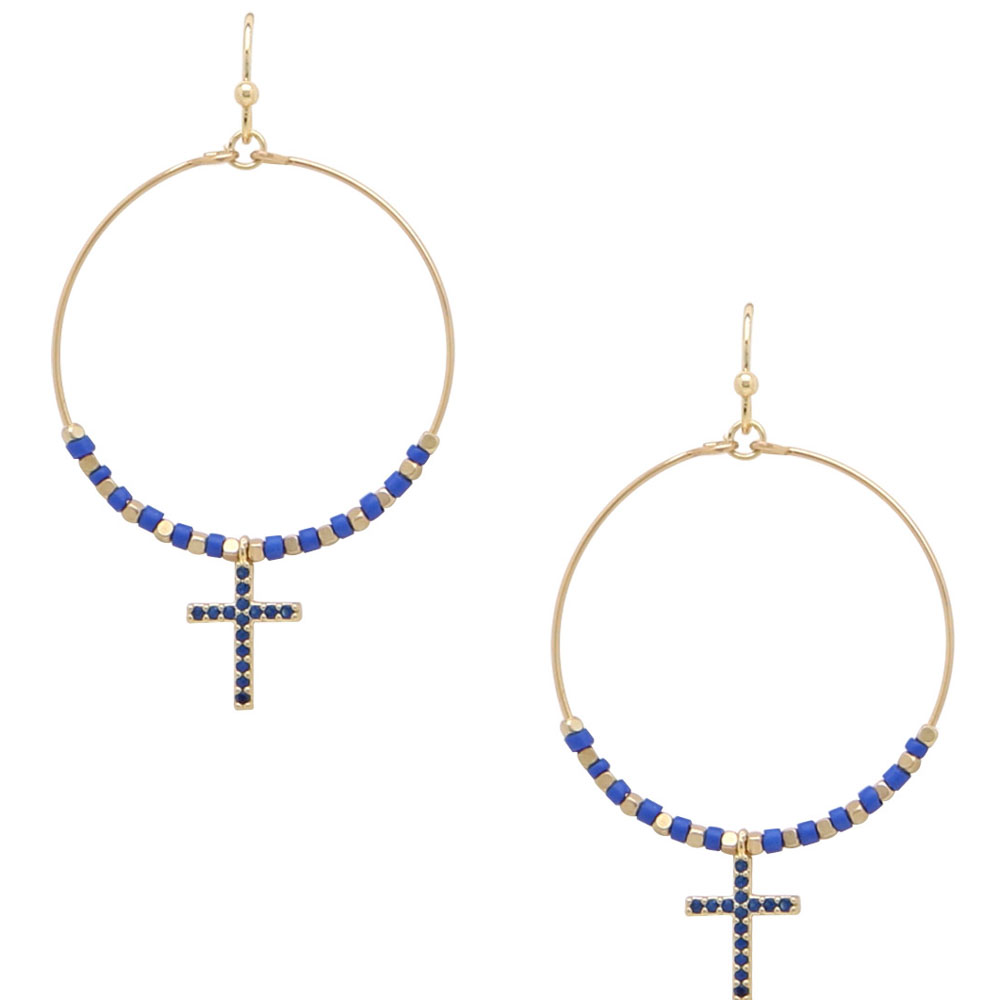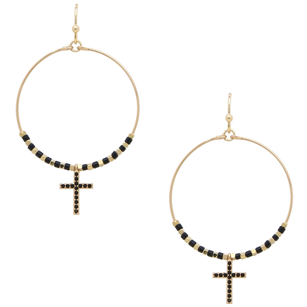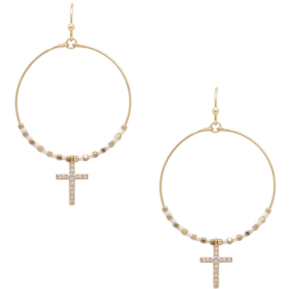 CROSS DROP CIRCLE EARRINGS