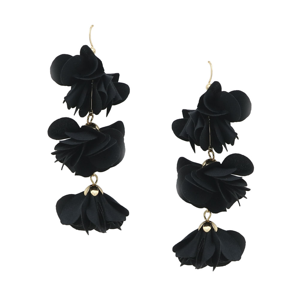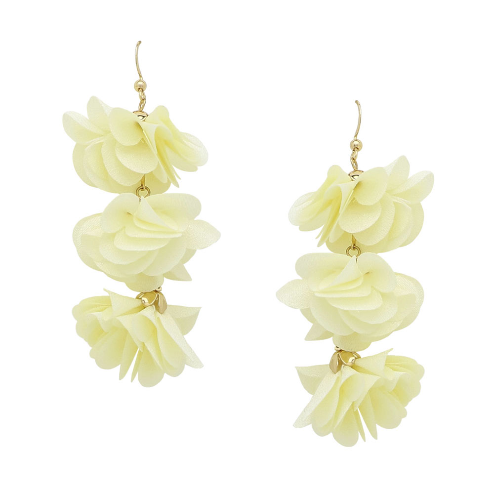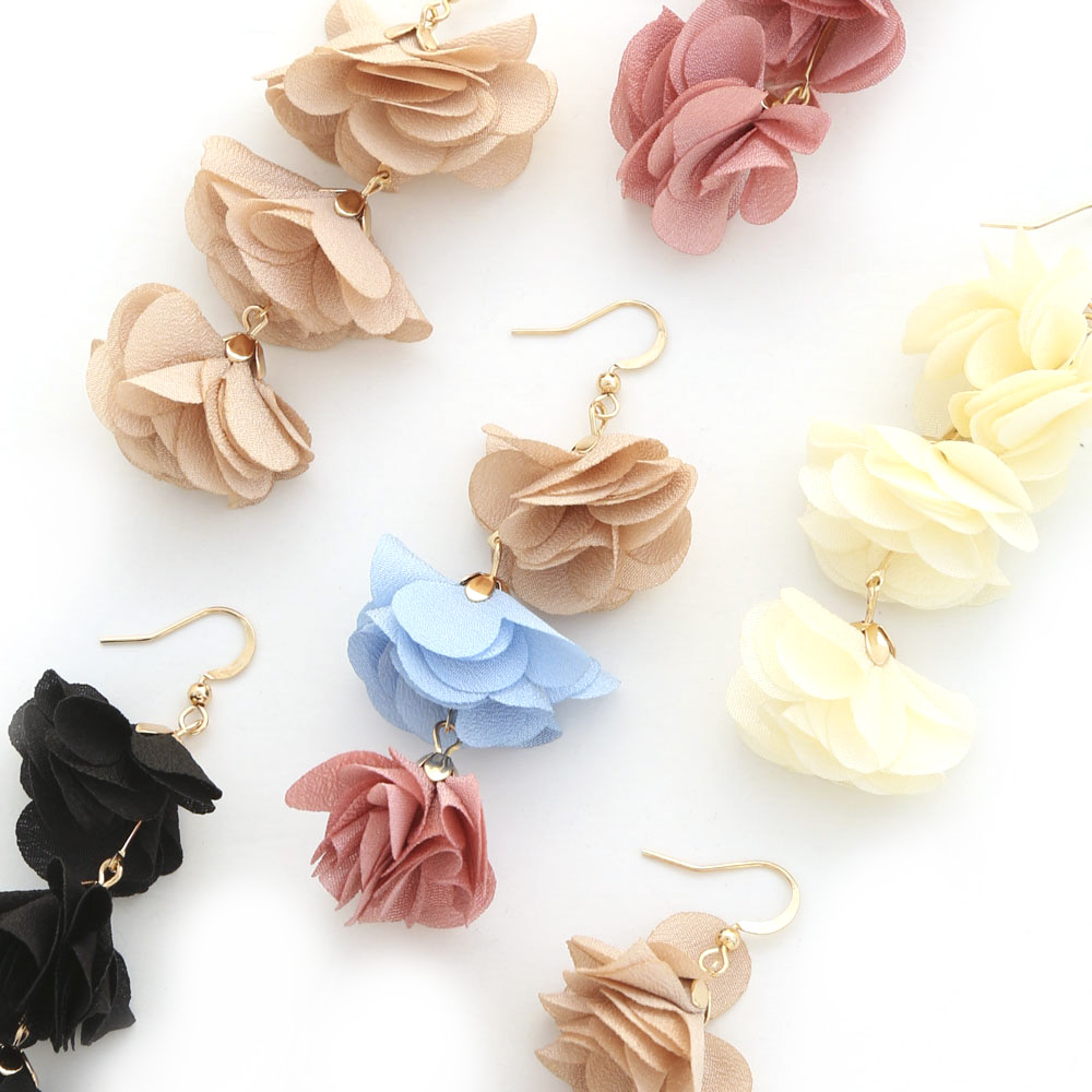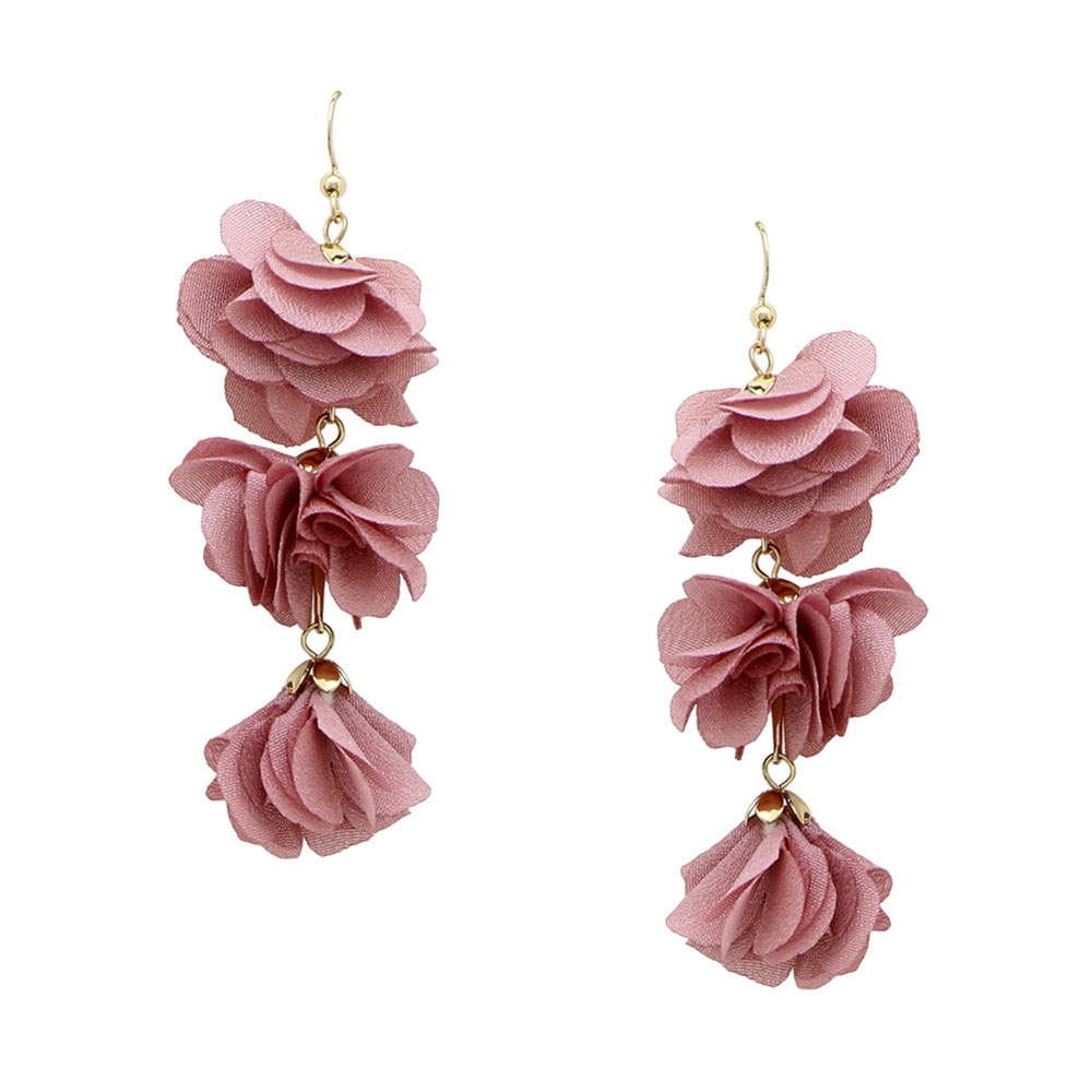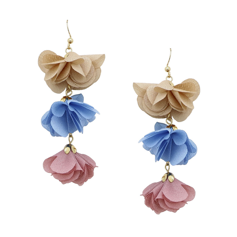 3 FABRIC FLOWER DROP EARRINGS