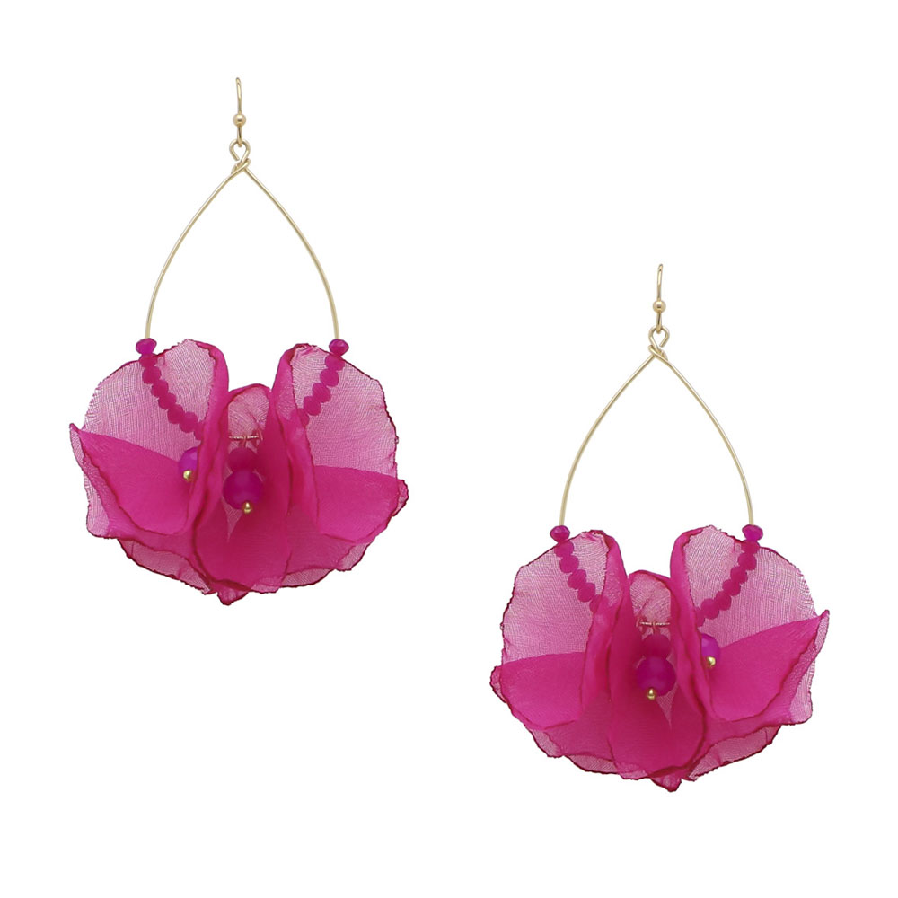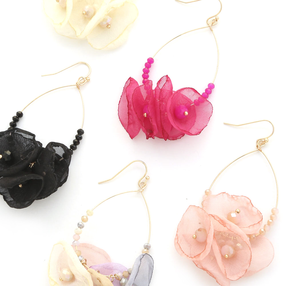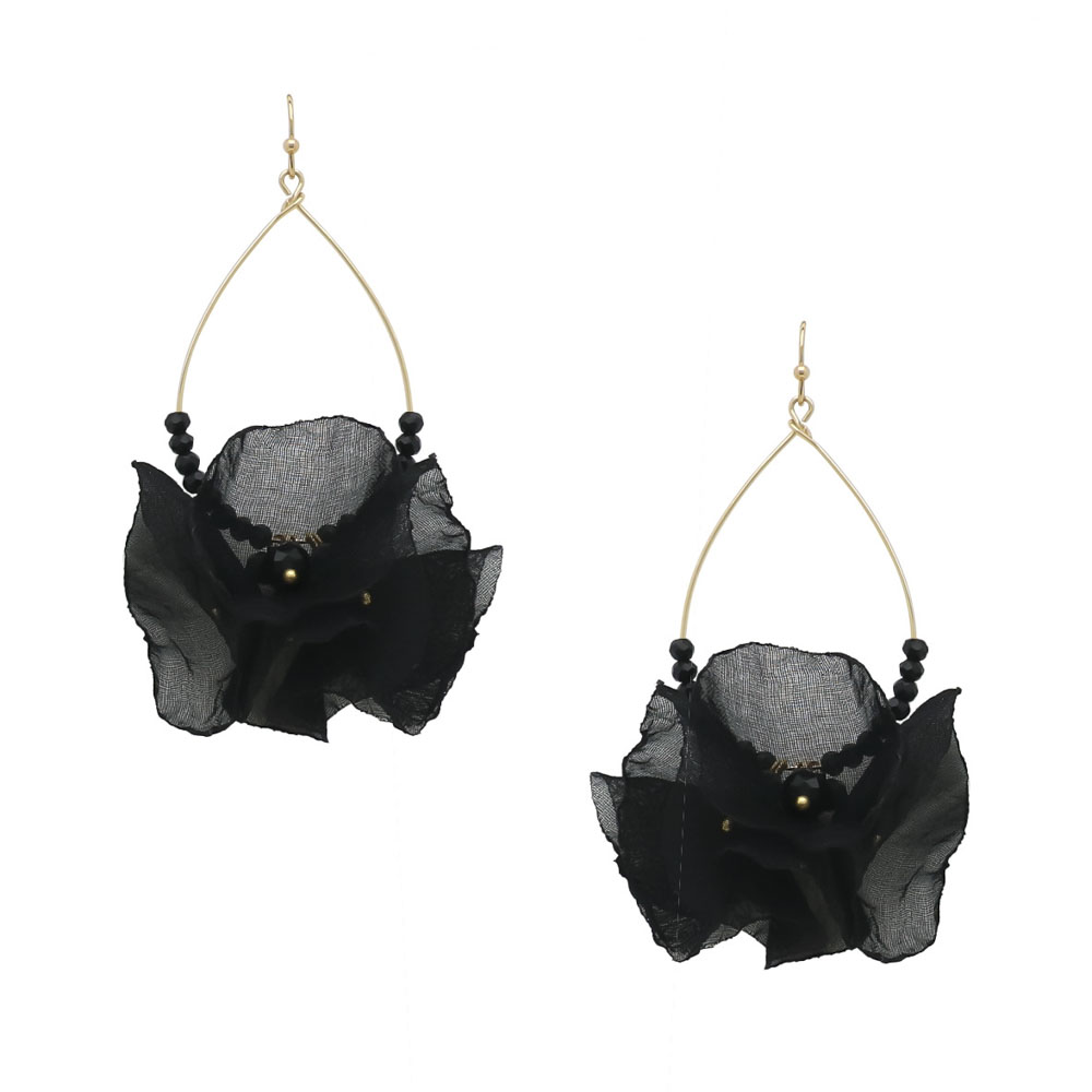 FABRIC FLOWER TEARDROP EARRINGS
