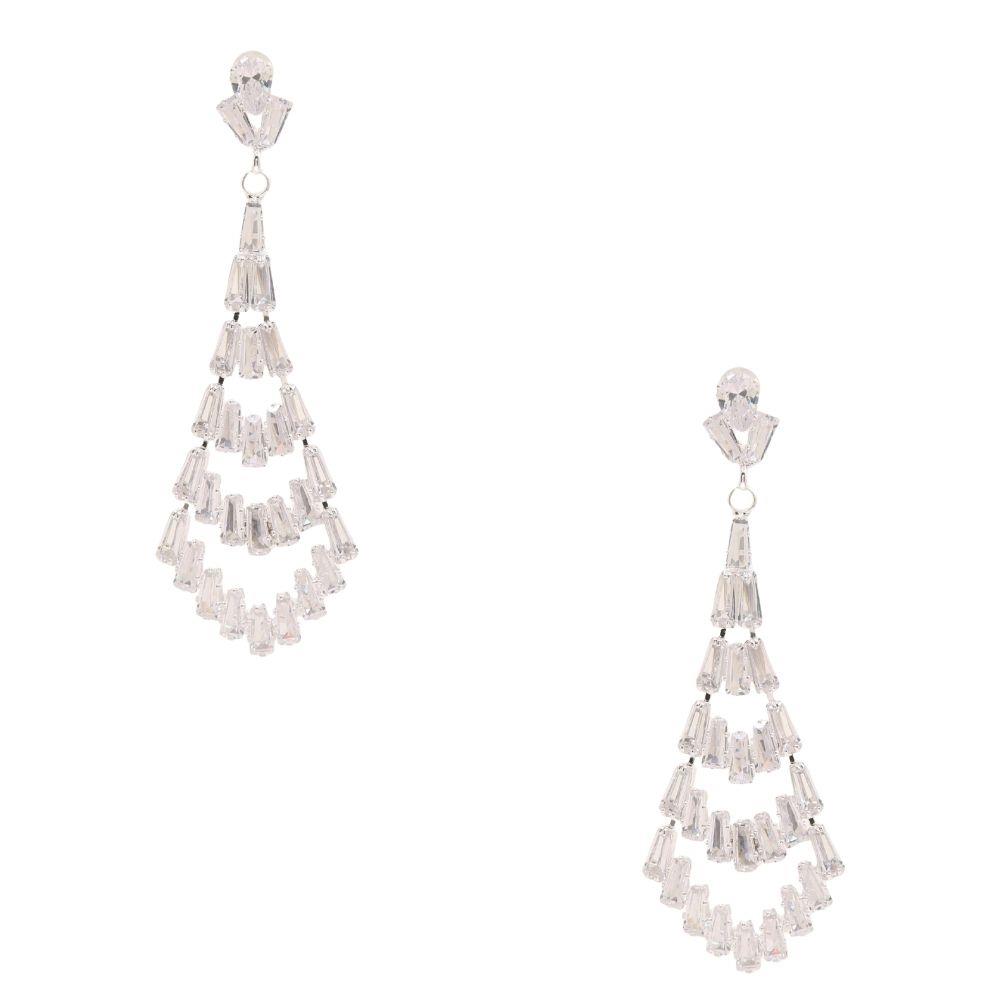 CRYSTAL METAL FLOWER LINK DANGLE EARRING