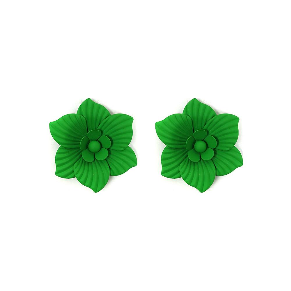 COLOR COATED FLOWER W/ CERAMIC BEAD EARRING