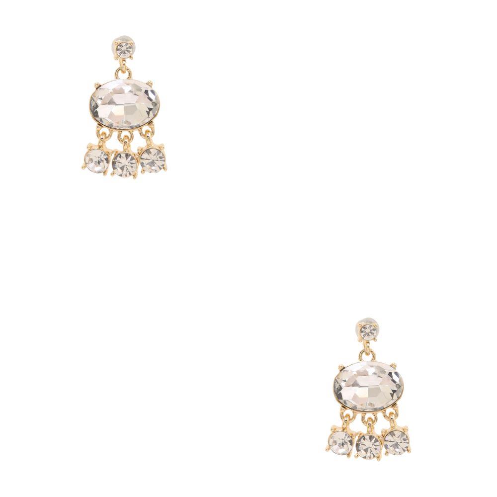 HAMMERED METAL OVAL CRYSTAL DANGLE EARRING